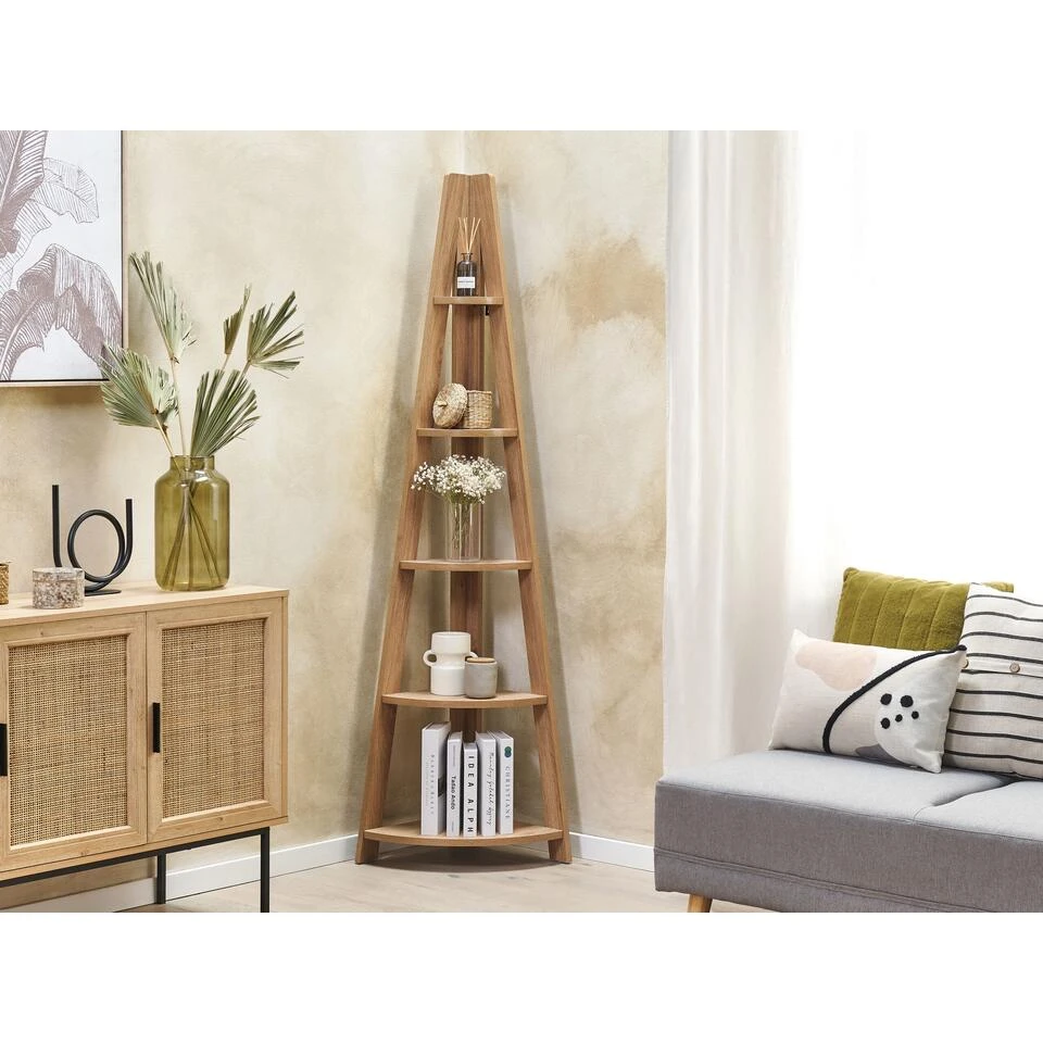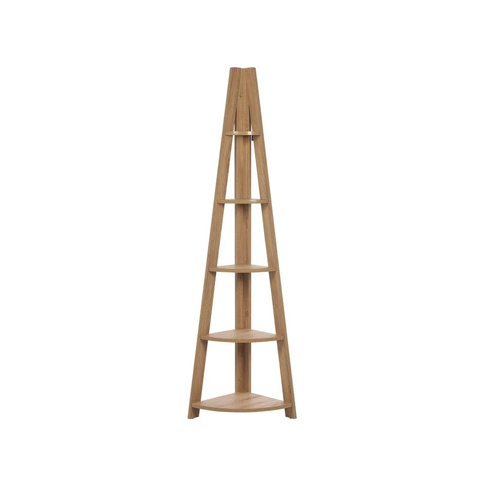 Decoratieve hoekkast. Uniek, decoratief en nog praktisch ook. Dat is deze boekenkast, speciaal voor in de hoek van je kamer. De kast steelt de show door het eenvoudige en zeer sterke design. De warme walnoottinten in combinatie met zijn functionaliteit maken deze kast de perfecte toevoeging voor iedere trendy kamer. Drie houten latten vormen een laddervormige boekenkast, die vier hoekvormige planken bevat. Er is genoeg ruimte voor je boeken of om andere pronkstukken zoals bijzondere souvenirs op unieke wijze tentoon te stellen!