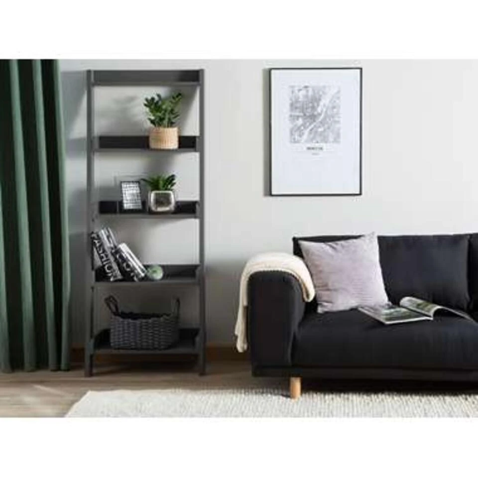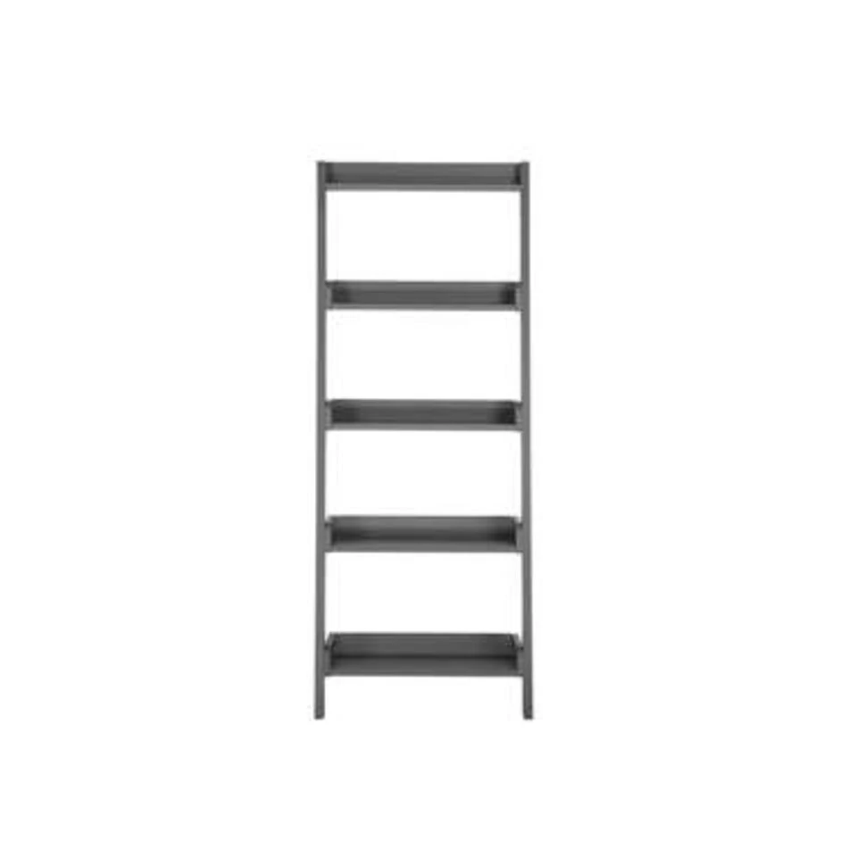 Decoratieve ladderkast. Deze wandkast verrast door zijn bijzondere vormgeving, praktische opbergruimte en elegant design. De kast oogt als een ladder, waarbij de diepe treden plaats bieden aan boeken en tijdschriften, woonaccessoires of huishoudelijke producten. Het is een charmante boekenkast, die je vanwege de verfijnde afwerking ook als decoratief meubelstuk in huis kunt plaatsen. De grijze tint geeft de duurzame kast een moderne uitstraling. De vijf planken hebben aan de zijkanten en achterzijde opstaande randen. Ze bieden voldoende ruimte voor boeken, foto’s of decoratieve stukken. De ladderkast is eenvoudig schoon te maken. De boekenkast is een sieraad in je huis en biedt functionele opslagruimte voor elke kamer.