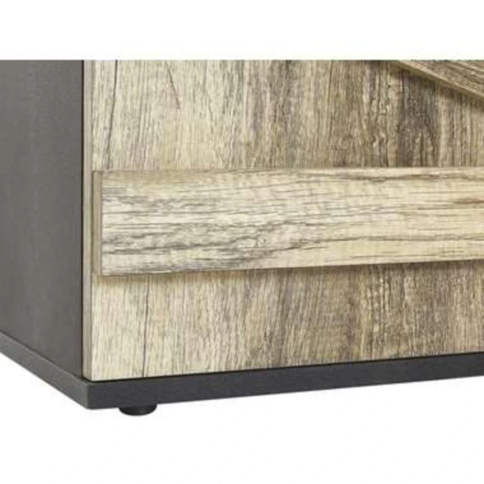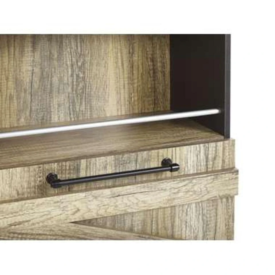 Moderne boekenkast met deurtje. Deze moderne boekenkast in schuurstijl is een trendy toevoeging aan jouw woonkamer. Kenmerkend voor de kast is de ruime opbergruimte aan de basis van de kast, welke essentiële ruimte bied voor elke flat of andere woning. De voorzijde, achterwand en planken van de boekenkast worden gekenmerkt door een decoratief houtnerfeffect dat veel sierwaarde toevoegt aan elk rustiek geïnspireerd interieur.