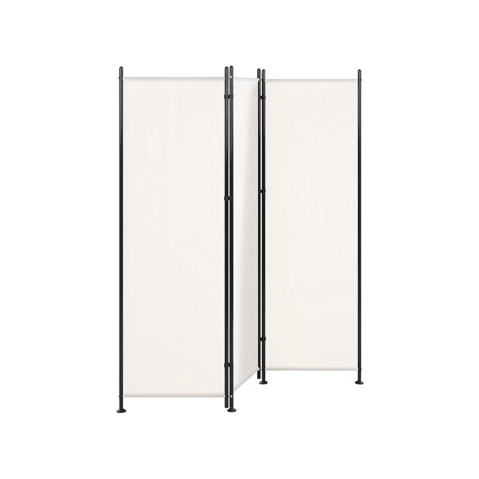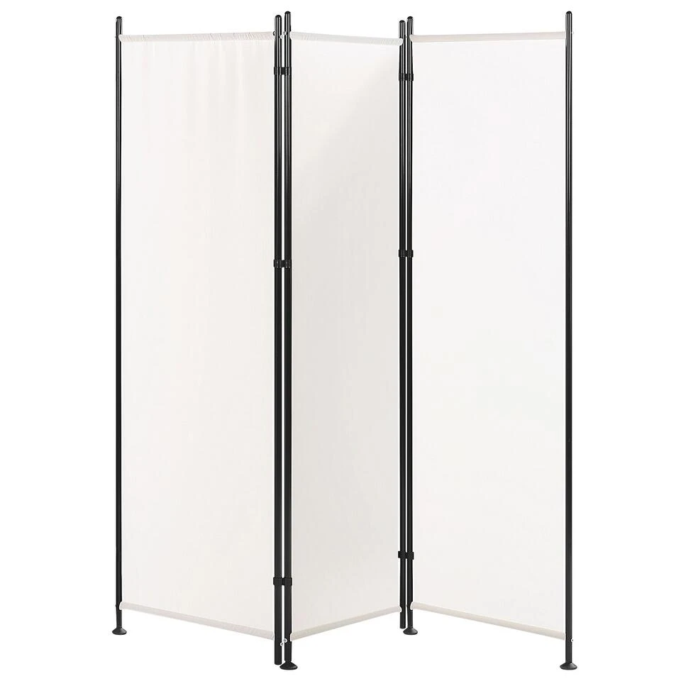 Polyester kamerscherm in wit. Plaats dit kamerscherm in jouw slaapkamer of andere binnenruimtes om ze meer privé en stijlvol te maken. Dit kamerscherm is gemaakt van gemakkelijk te onderhouden polyester, terwijl het frame is gemaakt van staal, wat de duurzaamheid van het hele stuk garandeert. Door zijn constructie van drie panelen, kan het dit kamerscherm gemakkelijk worden opgevouwen en verborgen wanneer het niet nodig is. Door de moderne kleur past de room divider in allerlei verschillende interieurstijlen.