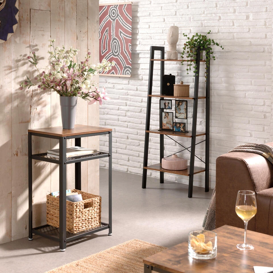Deze handige, open kast is ideaal om jouw favoriete boeken, planten of decoratie op te etaleren. Het metaal in een matte, zwarte kleur geeft deze boekenkast een lichte industriële toets. De bruine houten planken zorgen anderzijds voor een warme, vintage look.
