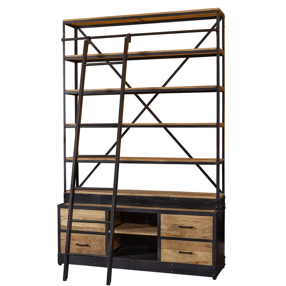 Over de planken van massief mangohout worden meerdere lagen houtolie en een blanke, natuurlijke bijenwas aangebracht om het hout te beschermen tegen vocht, vuiligheid en kringen. Het frame, de ladder en de handgrepen van de lades zijn gemaakt van zwart gepoedercoat metaal.