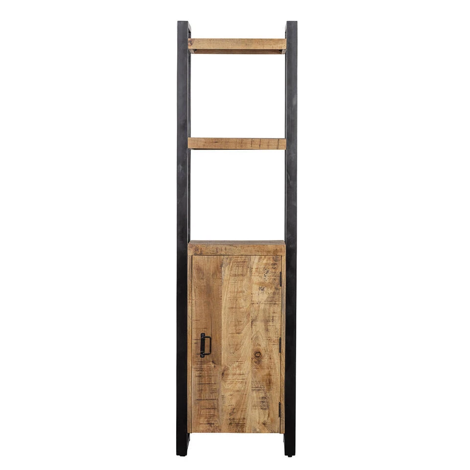 Deze robuuste kast is vrij smal, waardoor voor deze kast in elke ruimte wel een geschikte plek te vinden is. De kast heeft dankzij de twee open vakken en de twee vakken achter het deurtje voldoende ruimte om boeken of andere spullen op te bergen.