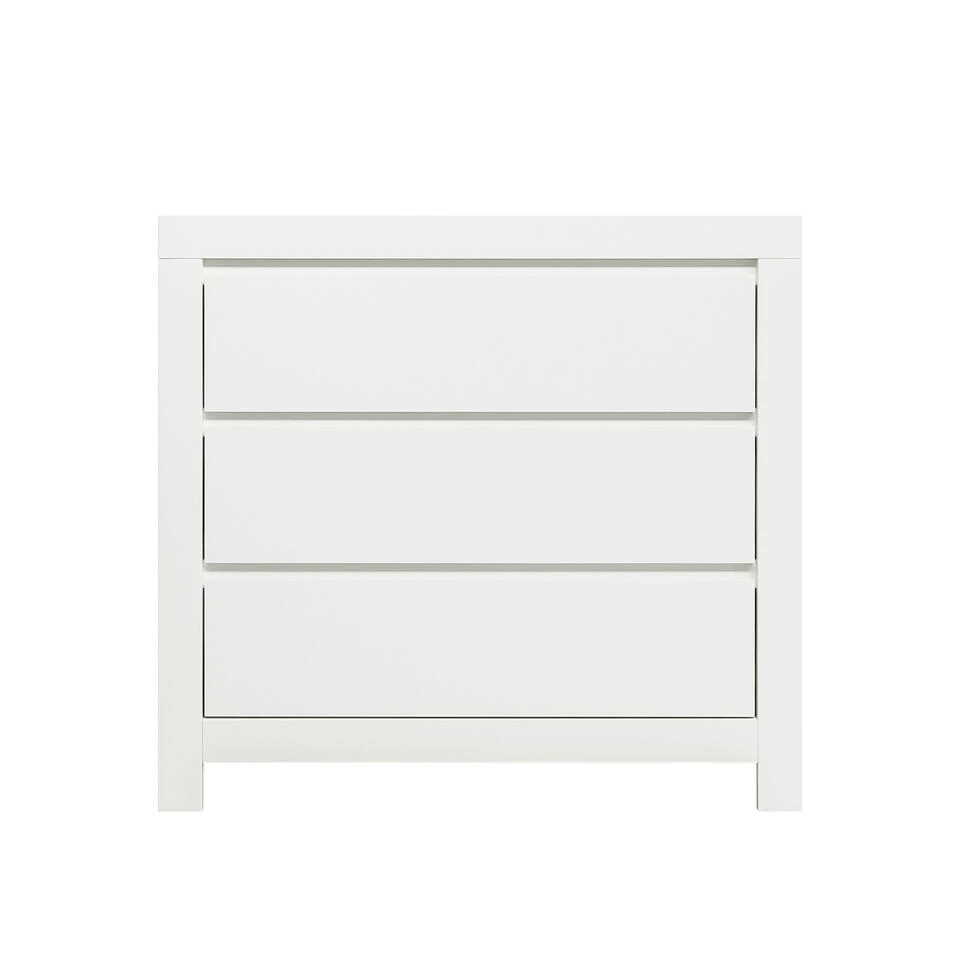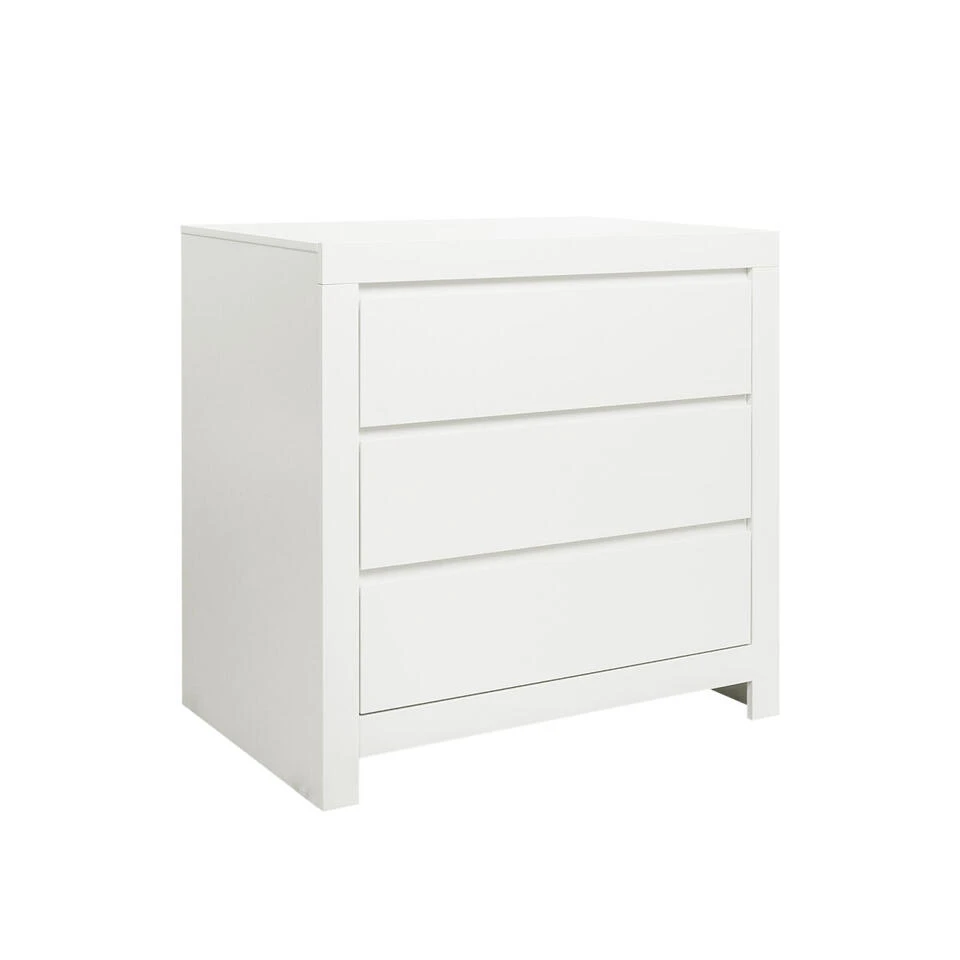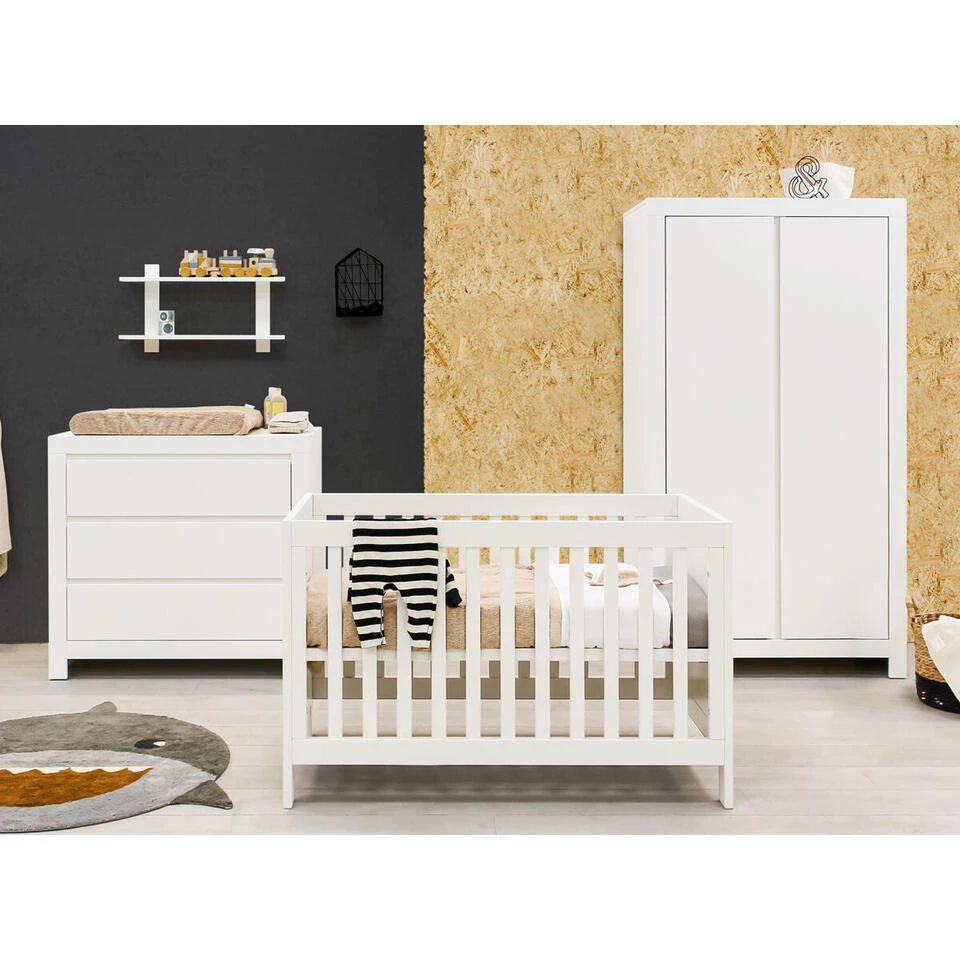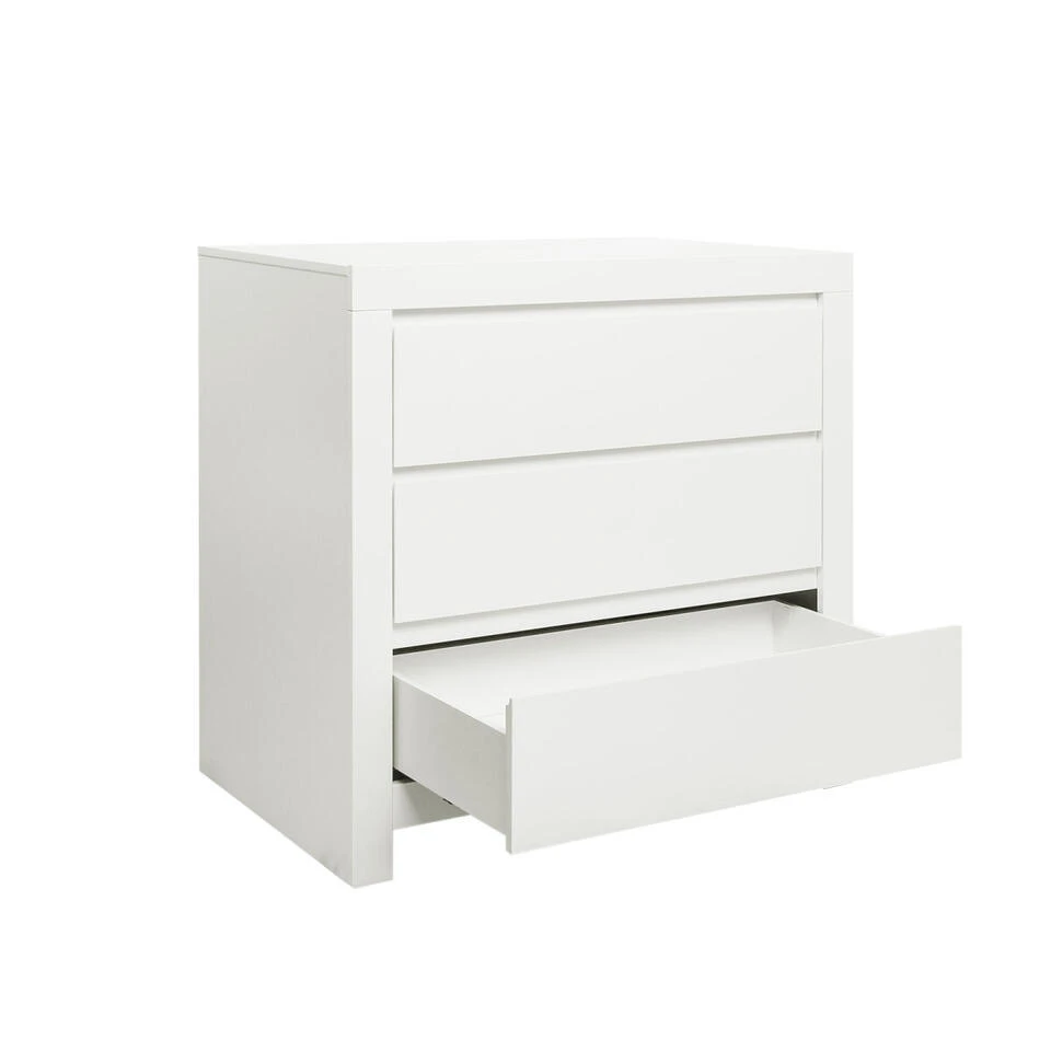 De commode Thijn van Bopita heeft een moderne uitstraling door de greeploze lades en rechte vormen. De laden hebben een front van robuust MDF en zijn glad afgewerkt. Het hout van deze ladenkast is afkomstig uit Europese bossen. De gebruikte lakken zijn op waterbasis wat veilig is voor kinderen en milieuvriendelijk. De drie ruime lades zijn voorzien van een softclose mechanisme, waardoor de lades zachtjes sluiten. Op deze commode is de barrier Square te plaatsen. Een barrier, ook wel bladvergroter genoemd, zorgt ervoor dat jouw baby recht voor je ligt, wat het verschonen eenvoudiger maakt. Combineer deze commode eveneens met het wandrek Thijn. Deze plaats je boven de commode, waardoor je verschillende verschoonartikelen eenvoudig bij de hand hebt. Barrier en wandrek zijn niet inbegrepen.