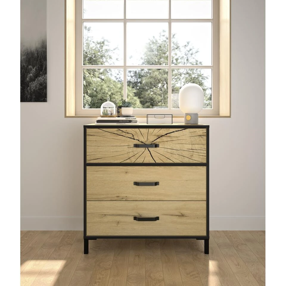 Diagone Ladekast Armor – 3 Laden – Zwart/eikenkleur