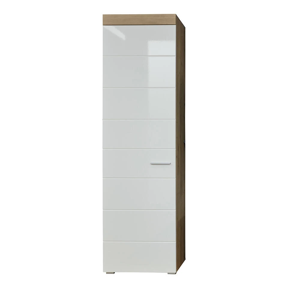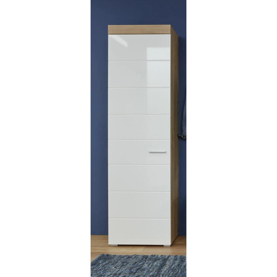 Amanda/MandoGD kledingkast 1 deur, 5 legplanken eiken decor, wit hoogglans. Kleur kast: essen eiken melamine. Kleur voorkant: Wit MDF HG TZ. Kleur afwerking: essen eiken melamine. Je ontvangt meubels van een goede kwaliteit met een aangenaam comfort, gemaakt in een stijlvol en mooi design. Onze meubels zijn zeer aantrekkelijk geprijsd. Creëer uw eigen persoonlijke stijl met een nieuw meubel. Combineer met kleinmeubels of een paar mooie woonaccessoires. Hier verkrijg je de nieuwe woningtrends, zoals je ze in tijdschriften en magazines ziet. Bij ons vindt u unieke, praktische en comfortabele meubels met elk zijn eigen, mooi en apart design.