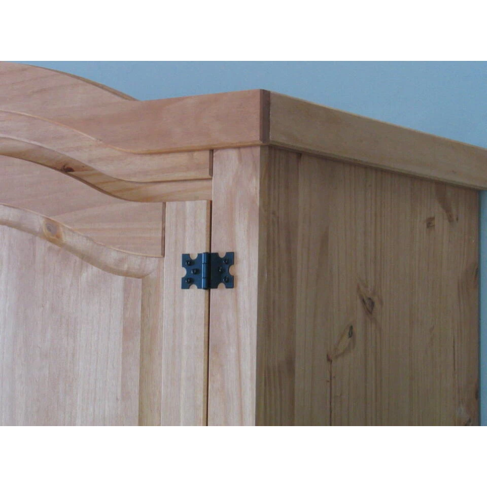 New Mexico 4-deurs kledingkast met spiegel. Een klassieke kledingkast in natuur geloogd grenen met een waxlaag. Prachtig te combineren met een van de overige meubels uit de Mexicaans grenen serie New Mexico.