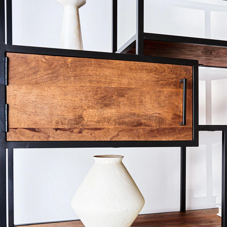 De Mateo wandkast is een ware eyecatcher en biedt veel opbergruimte! De kast heeft 5 leggers en 3 kastjes waarin je jouw favoriete spullen kunt tentoonstellen of kunt opbergen! Perfect voor in de woonkamer of slaapkamer. Het frame is van metaal en de leggers en kastdeurtjes zijn van mangohout.