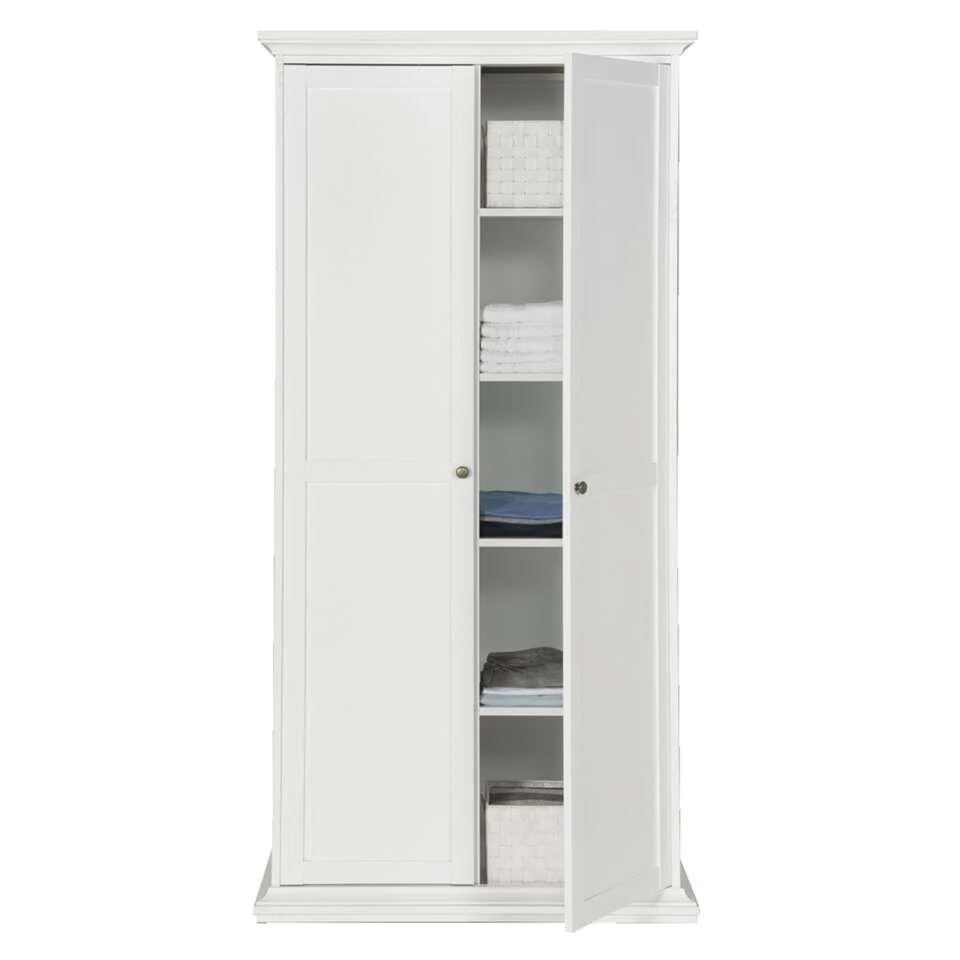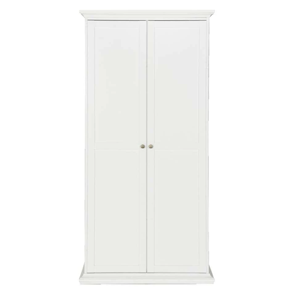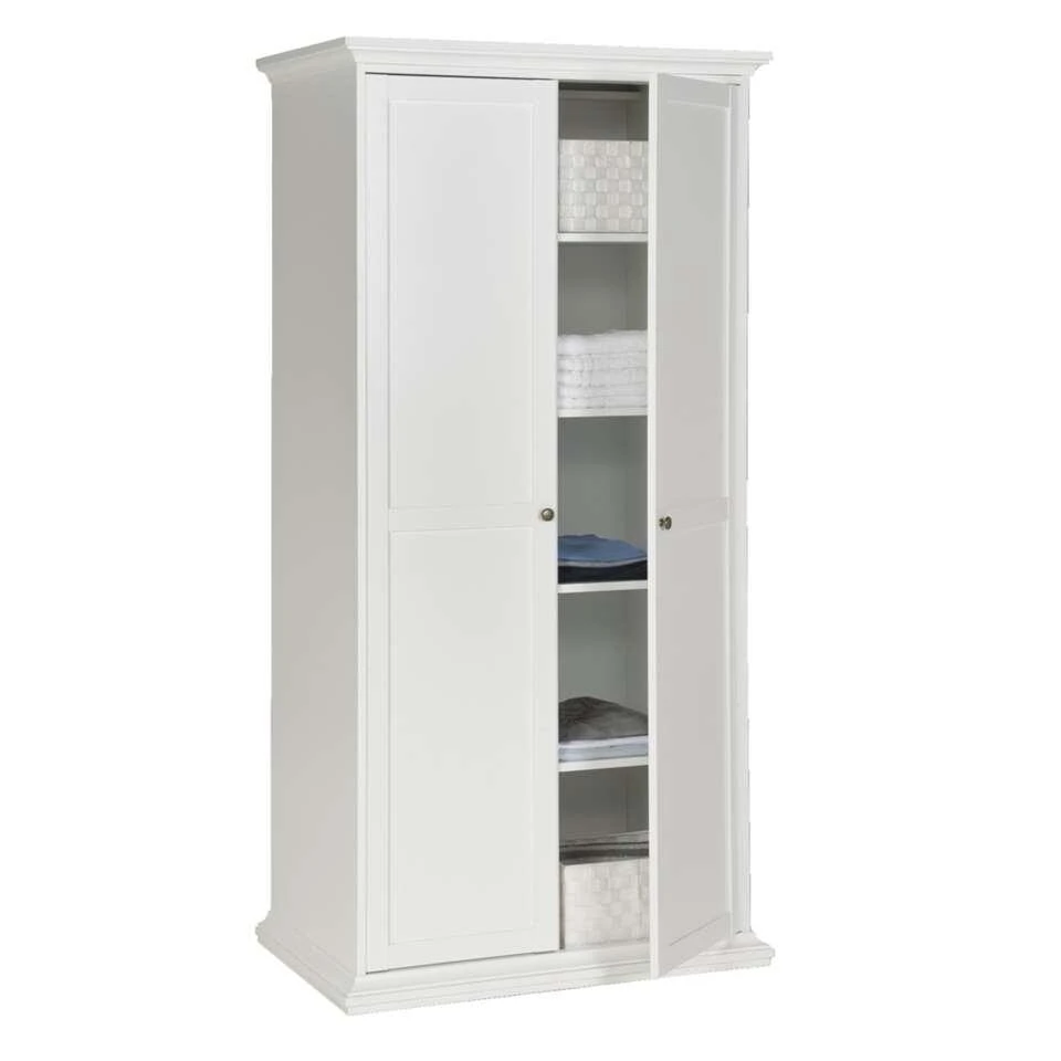 Kledingkast Fleur heeft een landelijke uitstraling en is uitgevoerd met twee deuren. De witte kast geeft jouw slaapkamer een extra romantisch tintje. De 2-deurs kast heeft een totale afmeting van 201x96x61 cm.