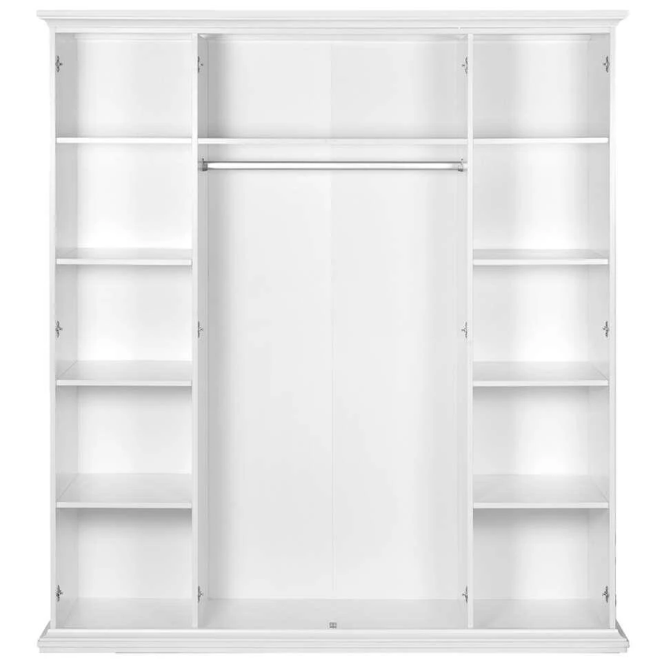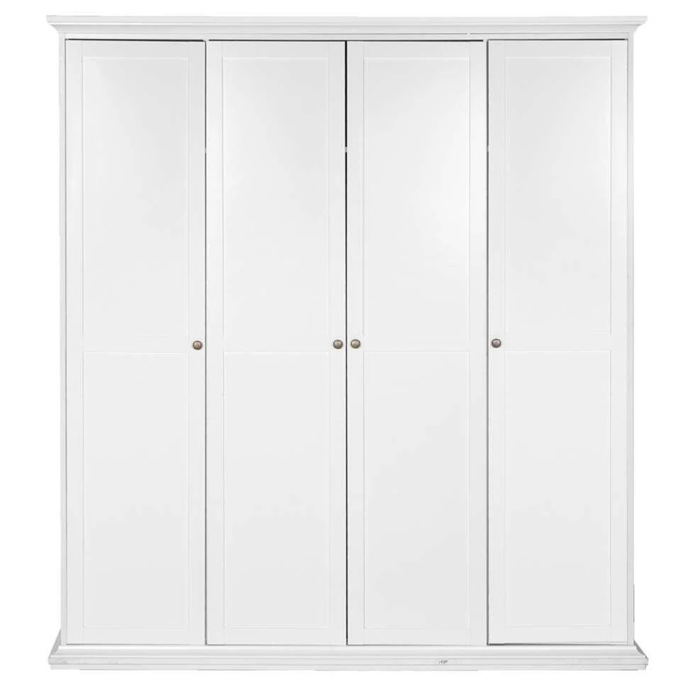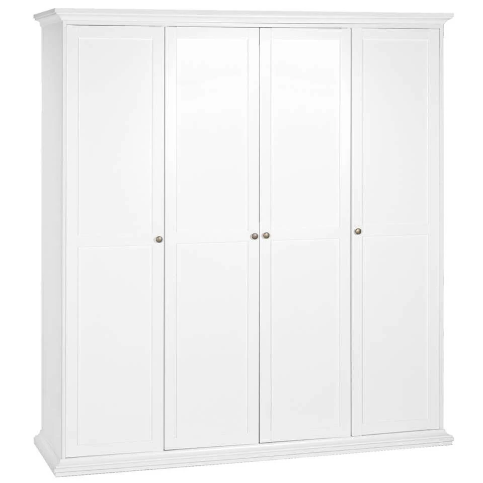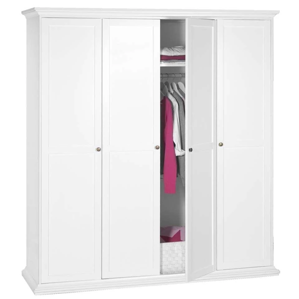Kledingkast kast Fleur heeft een landelijke uitstraling. De kast heeft vier deuren en is uitgevoerd in de kleur wit. De kast wordt geleverd met 9 legplanken en 1 roede, genoeg ruimte voor al je kleding! De linnenkast past uitstekend in een romantisch interieur.