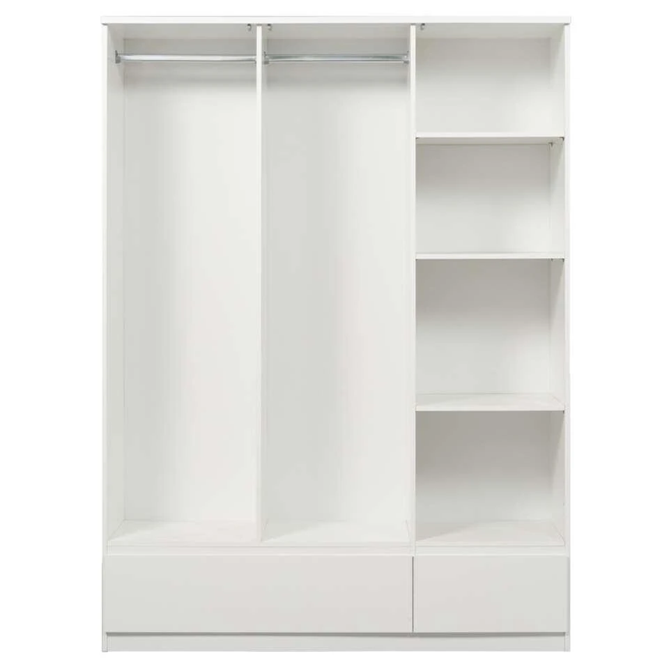 Kledingkast Naia heeft een afmeting van 200,6×147,4×50 cm en heeft ontzettend veel opbergcapaciteit. De kast heeft een moderne uitstraling en past in een stijlvol interieur. De kast is hoogglans wit van kleur, heeft 3 deuren en 2 lades.