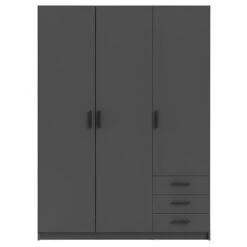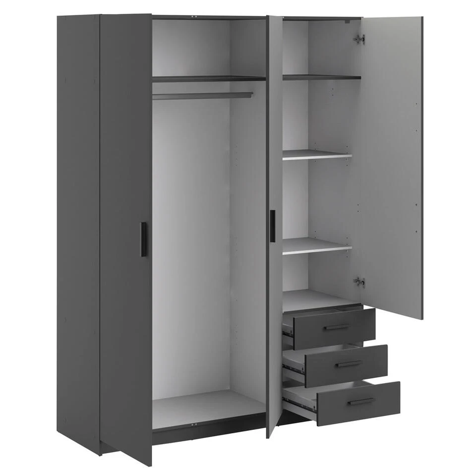 Deze antracietkleurige kledingkast past uitstekend in moderne interieurs.