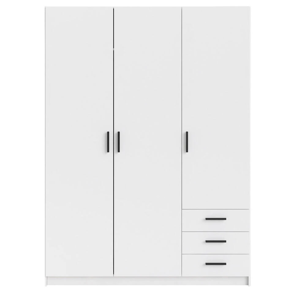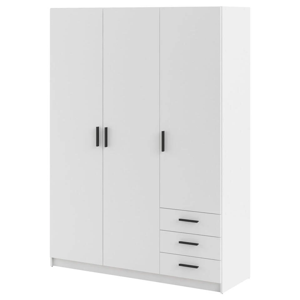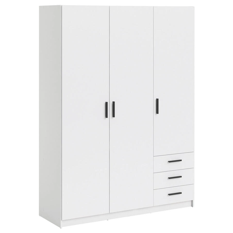 De 3-deurs kast heeft drie laden en een afmeting van 200x147x50 cm (hxbxd).