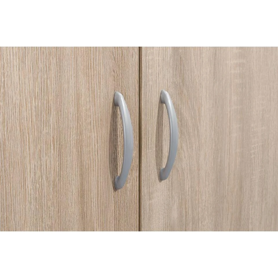 Kledingkast Varia is uitgevoerd met drie deuren, drie laden en een spiegel. De kast heeft een moderne uitstraling en past in een stijlvol interieur. De Varia is een handige kast, door zijn formaat past hij eenvoudig in verschillende ruimtes. Naast de slaapkamer kan de kast bijvoorbeeld ook gemakkelijk in de werkkamer of bijkeuken geplaatst worden.