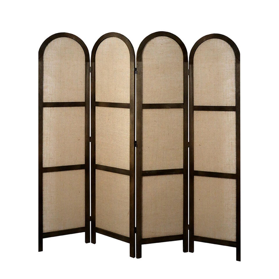 Dit decoratieve kamerscherm met 4 panelen in de kleur bruin heeft een afmeting van 170×160 cm (LxB) en past goed bij ieder interieur in huis of op uw werkplek. De mooie ronde bogen maken het kamerscherm uniek.Â