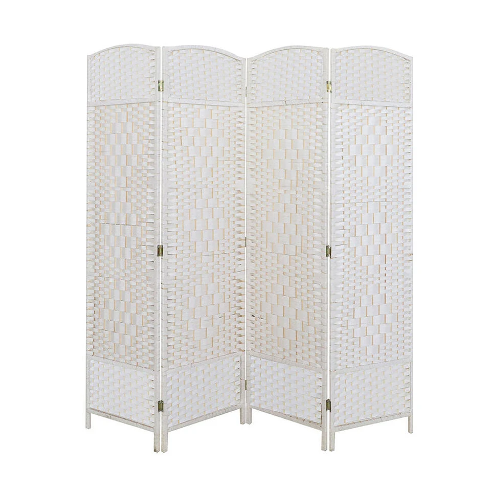 Dit decoratieve kamerscherm met 4 panelen van kunststof in de kleur wit heeft een afmeting van 170×160 cm (LxB) en past goed bij ieder interieur in huis of op uw werkplek.