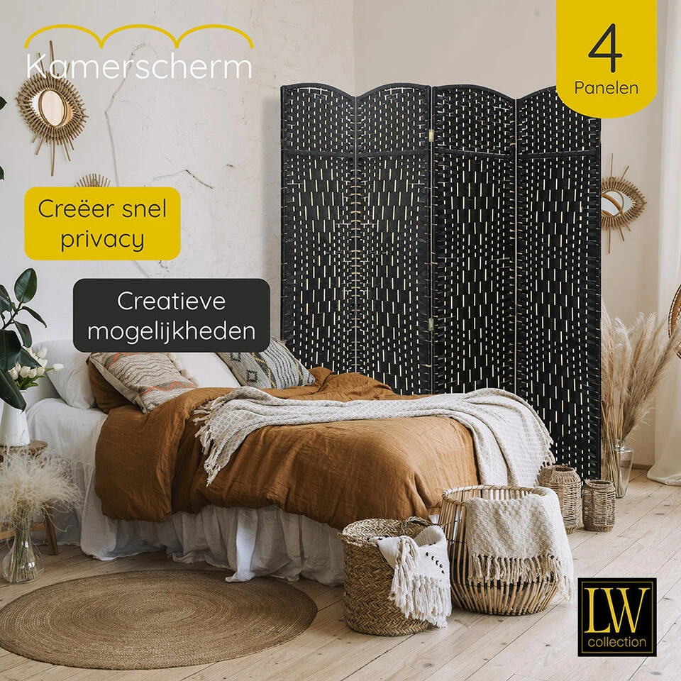 Scheidingswanden kunnen bijvoorbeeld ook gebruikt worden om een ruimte af te schermen. Ruimteverdelers worden ook wel gebruikt als decoratiestuk. LW Collection heeft een breed assortiment aan kamerschermen in uiteenlopende stijlen, materialen en kleuren. Kamerschermen of paravent van LW Collection worden gemaakt van hoogwaardige materialen om zo de hoogste kwaliteit te kunnen waarborgen.