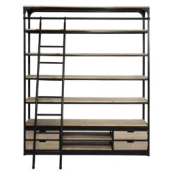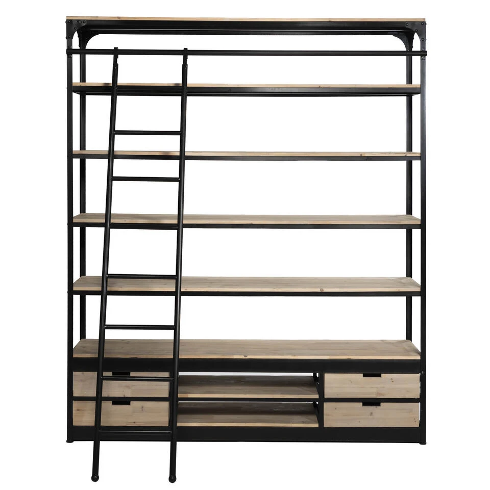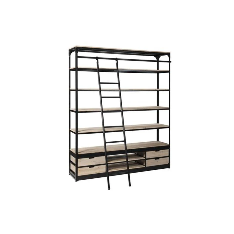 Ontdek onze nieuwste aanwinst: de industriële wandkast met ladder in een subtiele whitewash.