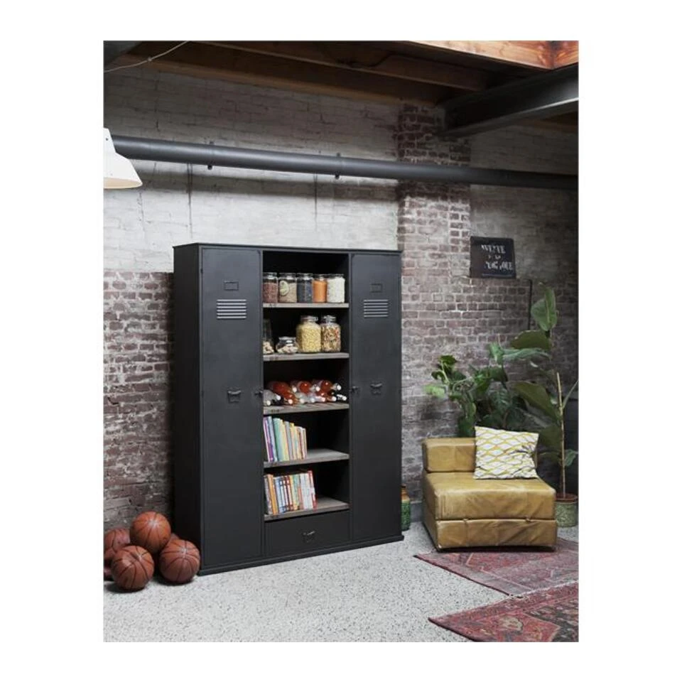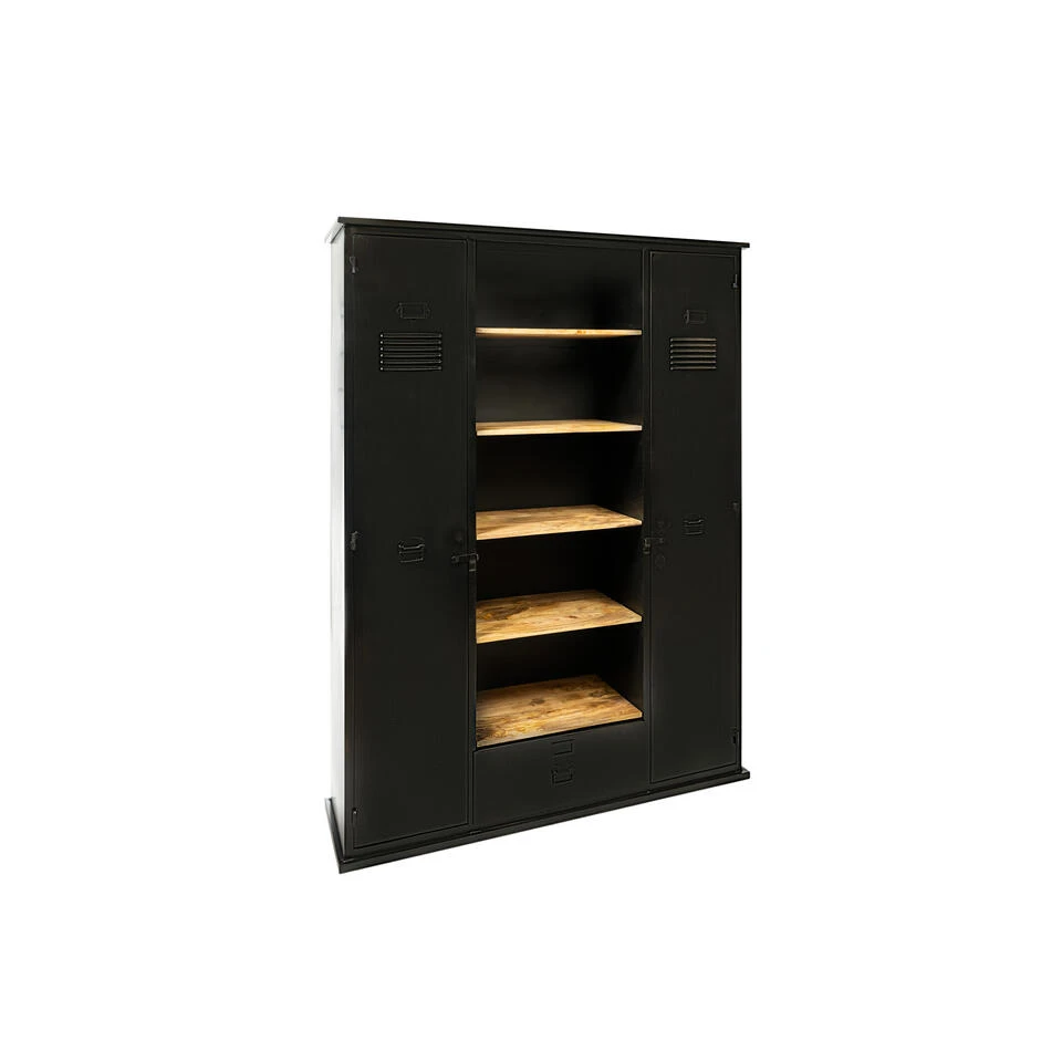De toffe industriële elementen van deze kast, zoals de ventilatieroosters en de kadertjes voor nametags die je kent van oude lockers, omlijsten jouw bezittingen. De stoere sluitingshaakjes en scharnierende greepjes geven het geheel een robuuste kwaliteit, en dat alles voor een betaalbare prijs!