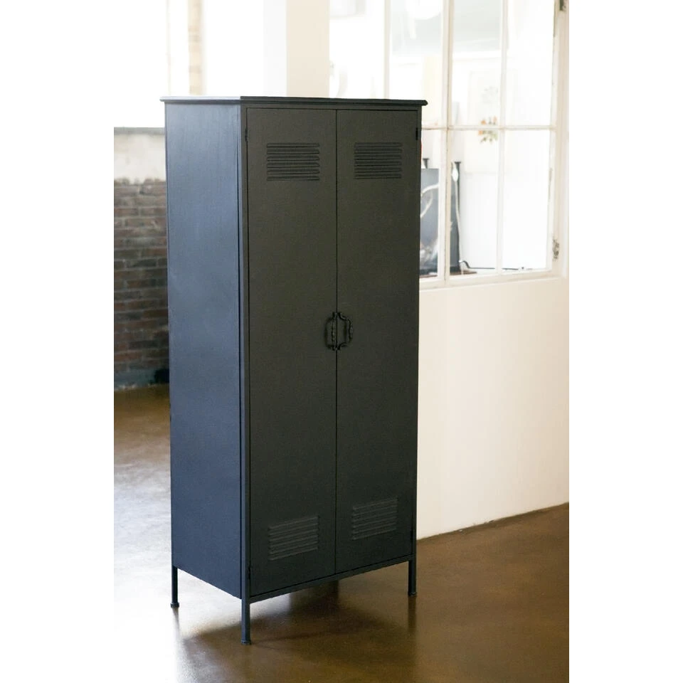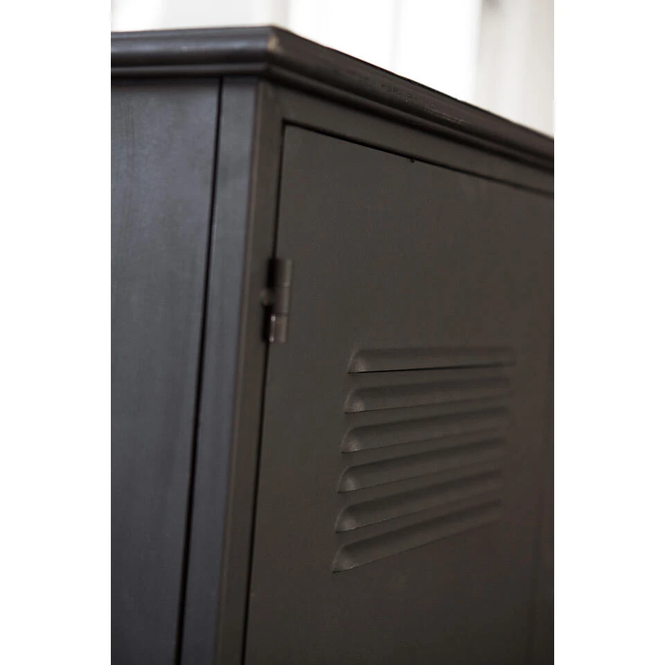 Met deze industriële lockerkast maak je een statement in je interieur. Geen saaiheid hier, maar een eenvoudige, matzwarte/antracieten kast gemaakt van stoer geleefd metaal.