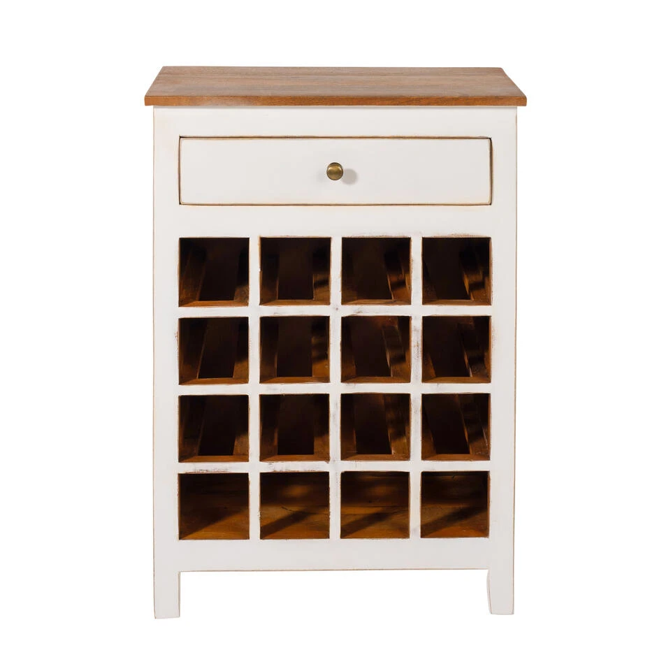 Met deze witte landelijke drankkast, die plaats biedt aan zestien liggende flessen en een schuif vol drankaccessoires, creëer je het gezellige middelpunt van de beste feestjes!