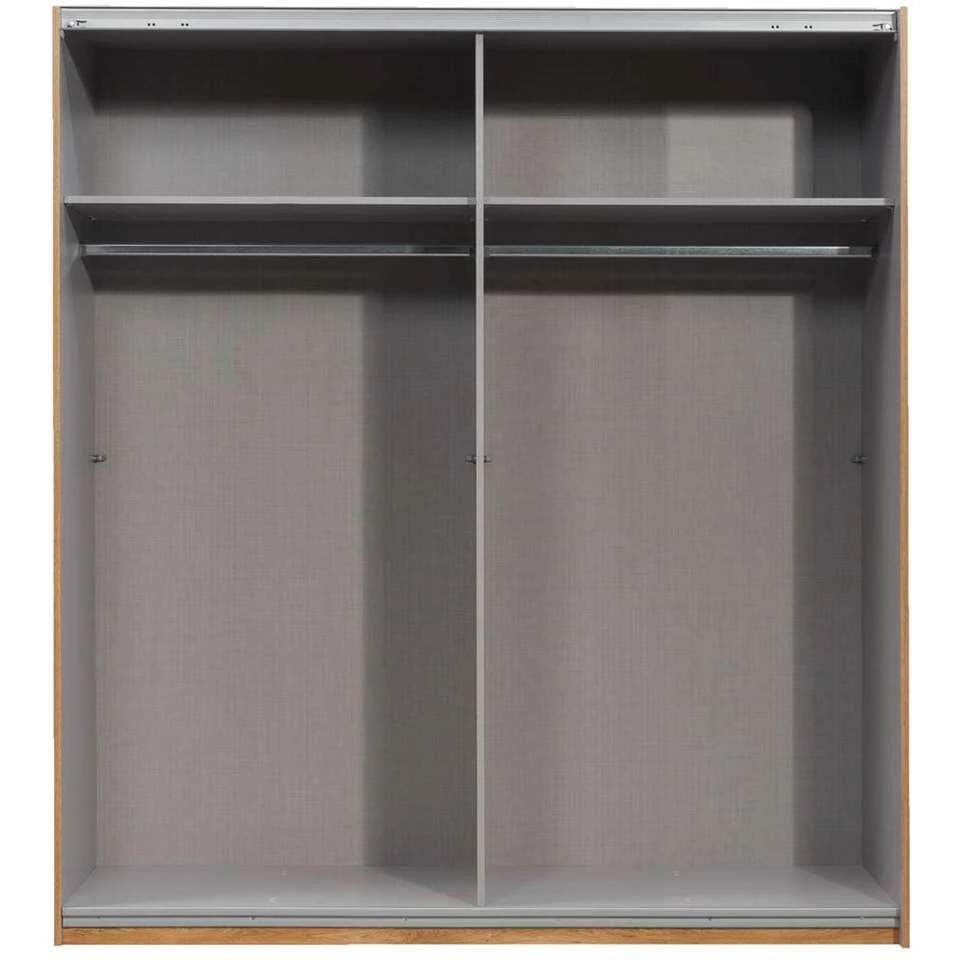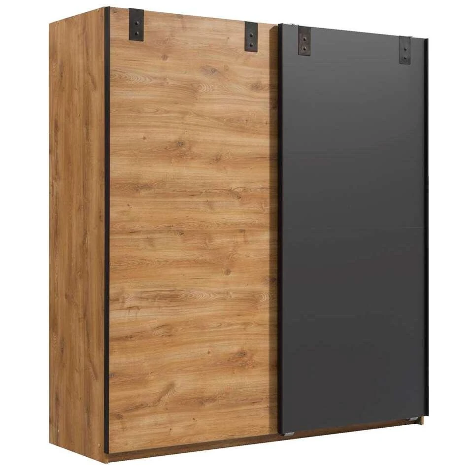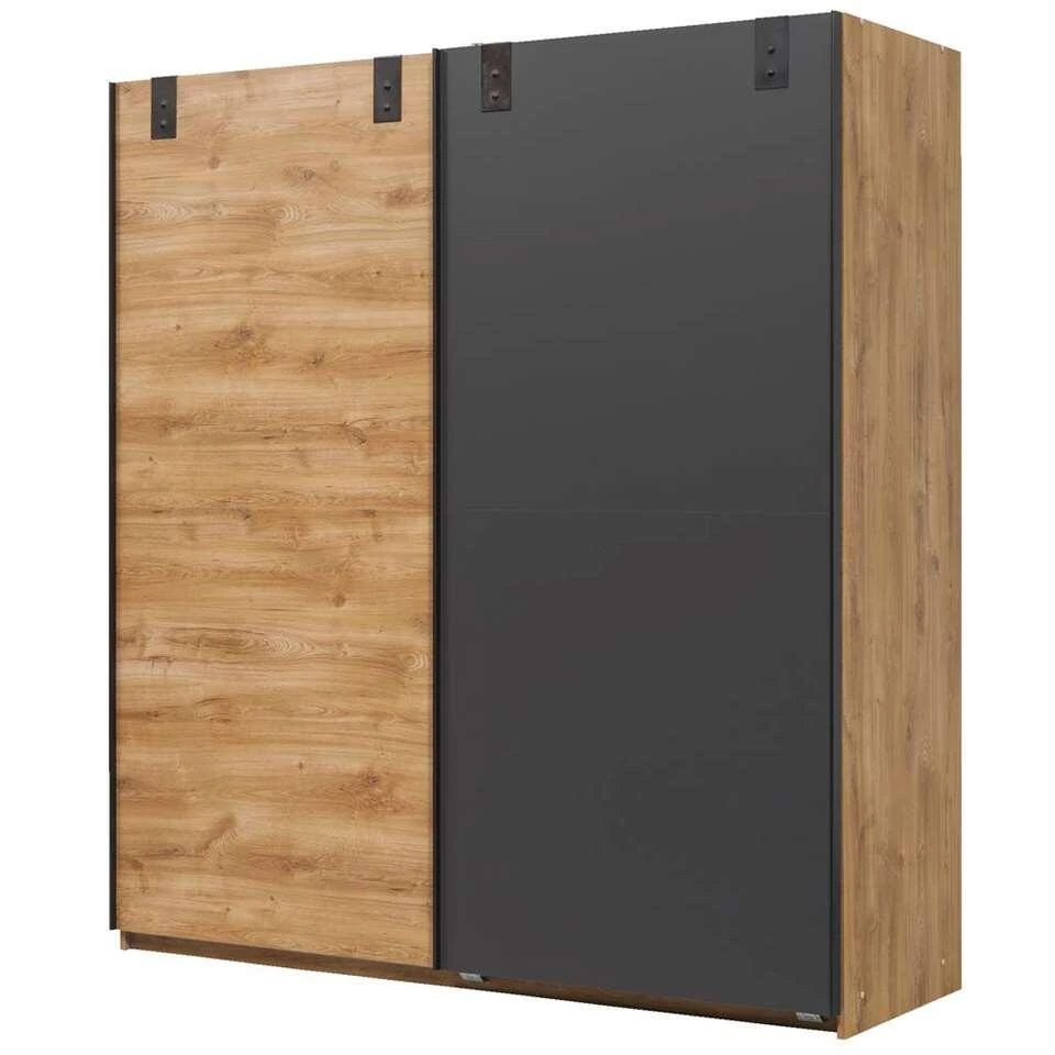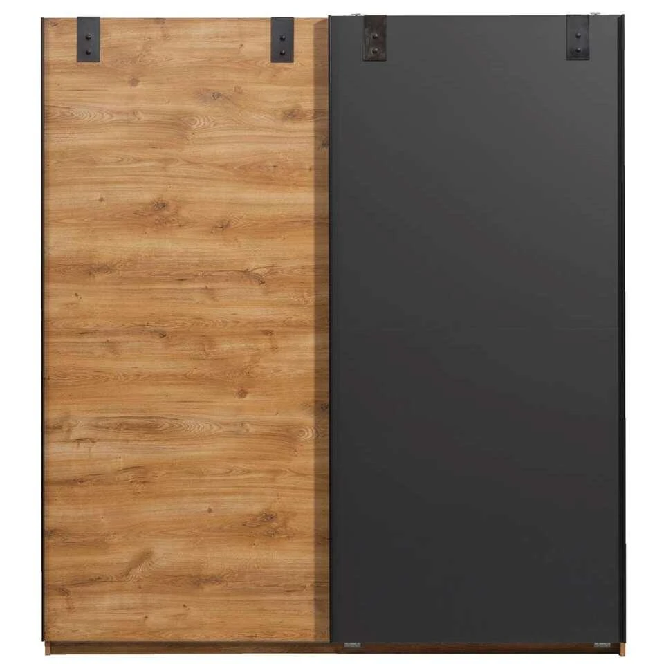 Schuifdeurkast Dex is een grote linnenkast, gemaakt van spaanplaat. De kast is uitgevoerd in eikenkleur/grafiet en heeft twee schuifdeuren. Eén deur heeft de eikenkleur, de andere deur heeft de grafietkleur. Deze kast is niet alleen functioneel, maar ook nog eens bijzonder leuk om te zien. De linnenkast wordt geleverd met 2 legplanken en roedes. Zo heb jij genoeg ruimte voor het het leggen en hangen van kleding.