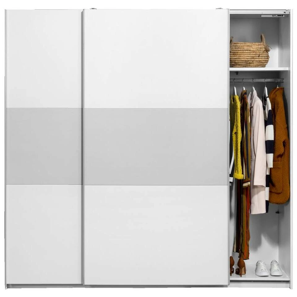 Schuifdeurkast Napoli is een ruime kledingkast met softclose deuren in de kleuren wit en grijs. Ben jij op zoek naar lekker veel opbergruimte? Dan is schuifdeurkast Napoli wellicht iets voor jou. Napoli heeft een modern design: de kast heeft twee grote schuifdeuren. Je kunt de kast indelen naar wens (legplanken zijn los te bestellen). De schuifdeurkast heeft een totale afmeting van 210x215x60 cm. Genoeg ruimte voor al jouw kleding!