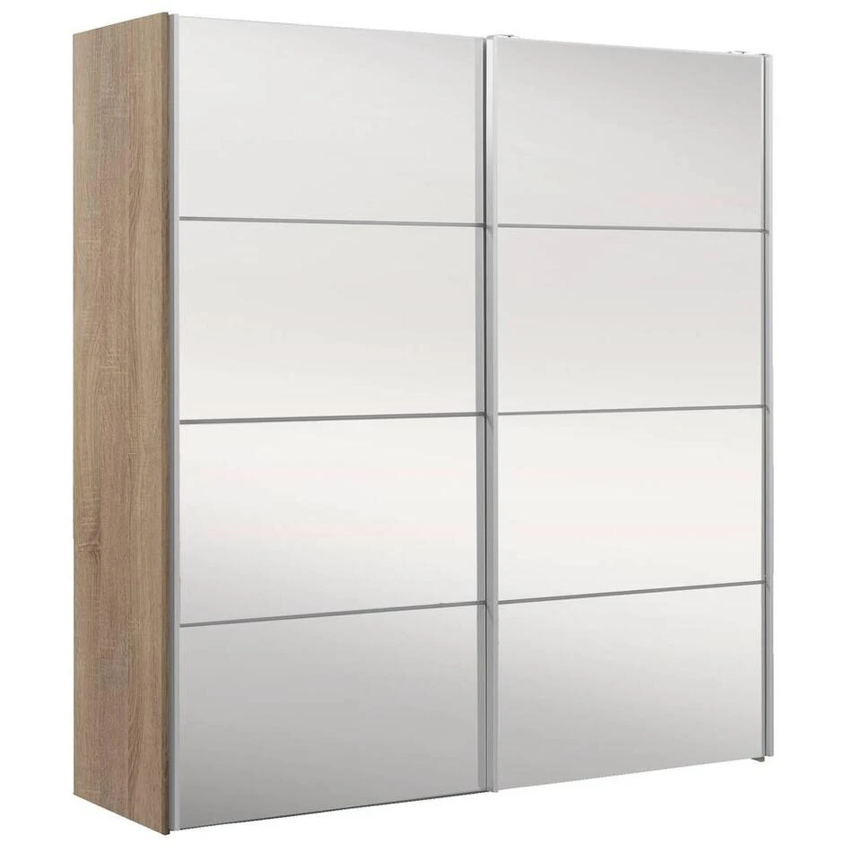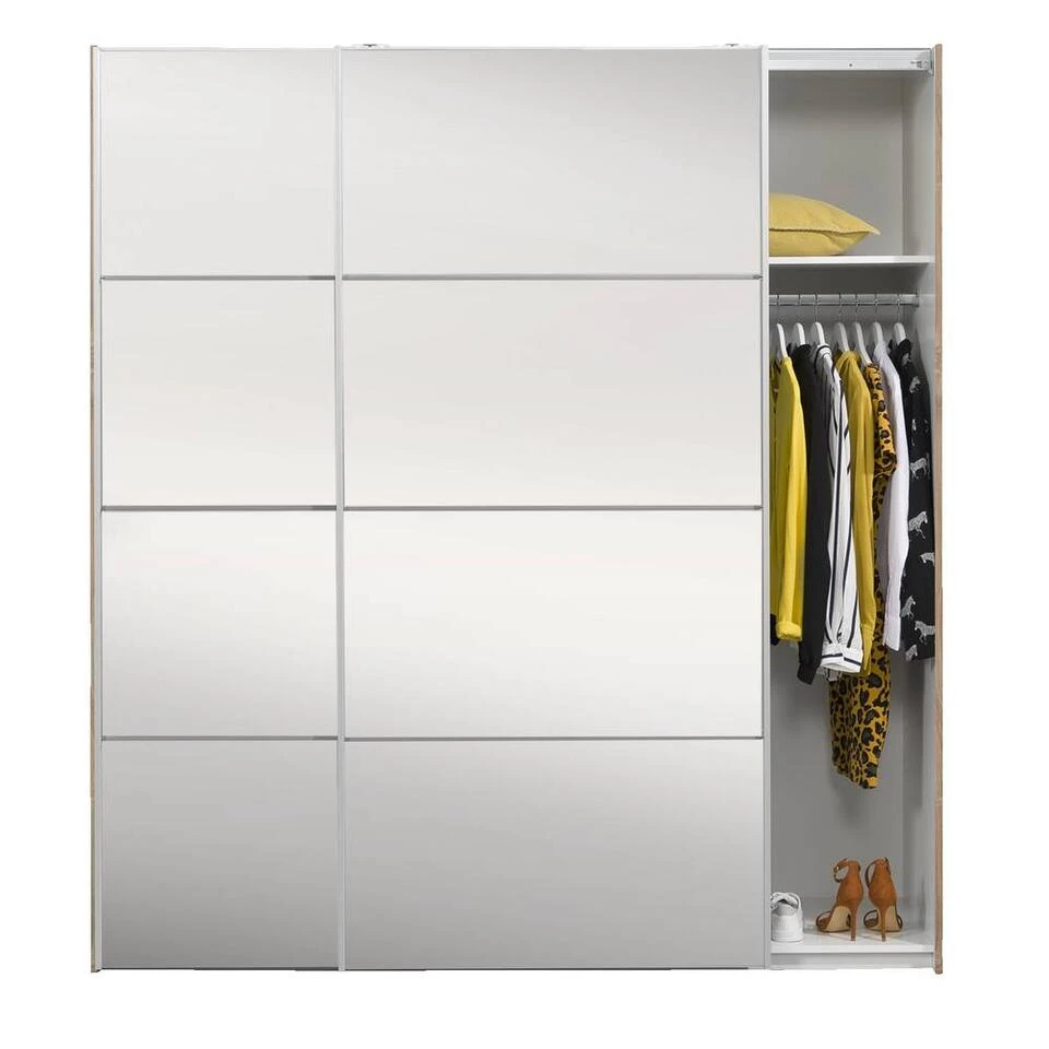 Schuifdeurkast Verona geeft je slaapkamerinterieur een modern accent. De kledingkast biedt voldoende ruimte voor al je kleding, schoenen en accessoires. De Verona kledingkasten zijn eenvoudig uit te breiden met extra accessoires en verkrijgbaar in diverse kleuren. De Verona is een eyecatcher in jouw nieuwe slaapkamer! Deze kast heeft een afmeting van 200x182x64 cm (hxbxd).