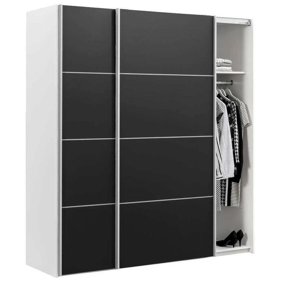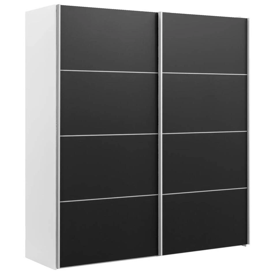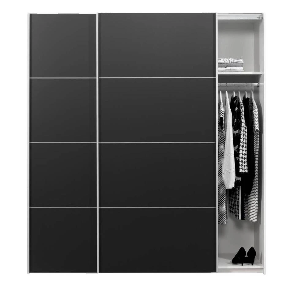 Schuifdeurkast Verona geeft je slaapkamerinterieur een modern accent. De kledingkast biedt voldoende ruimte voor al je kleding, schoenen en accessoires. De Verona kledingkasten zijn eenvoudig uit te breiden met extra accessoires en verkrijgbaar in diverse kleuren. De Verona is een eyecatcher in jouw nieuwe slaapkamer! Deze kast heeft een afmeting van 200x182x64 (hxbxd).