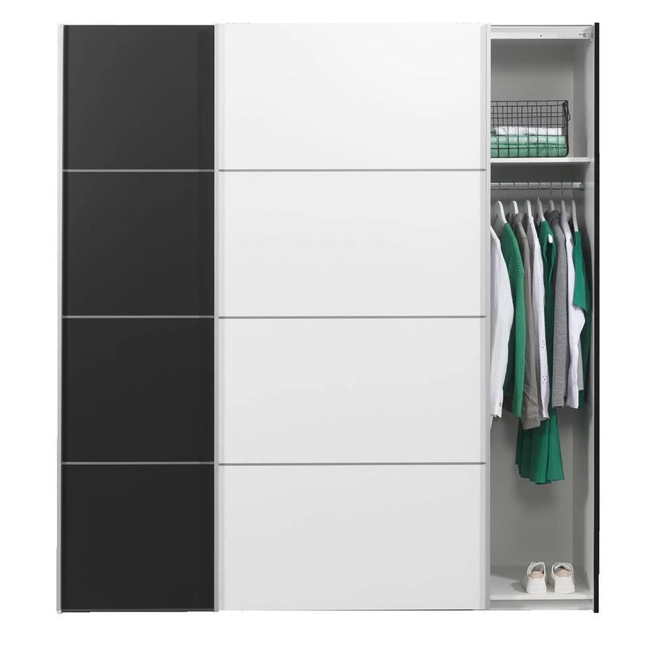 – 2 schuifdeuren (1x zwart, 1x wit)
