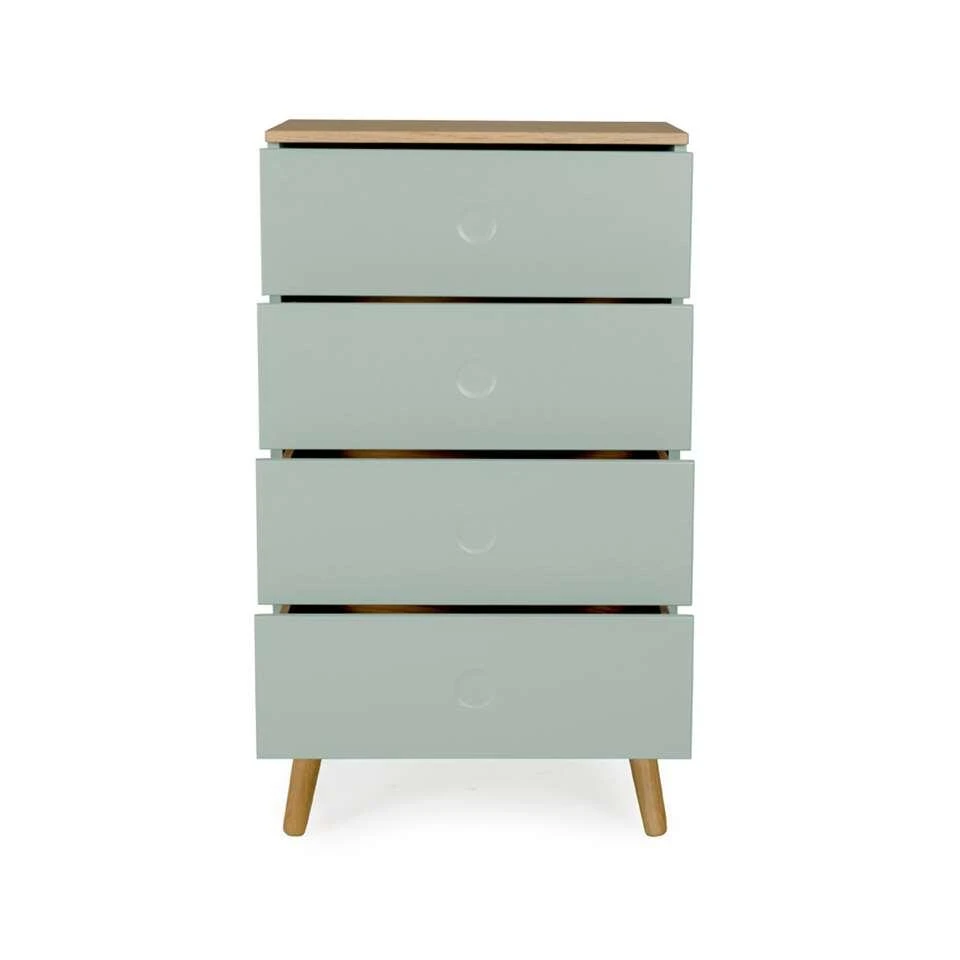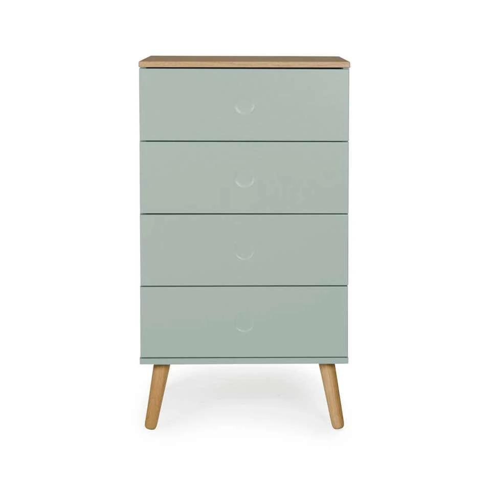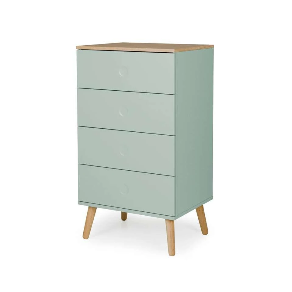 Tenzo ladekast Dot 4 lades is lichtgroen met eiken en heeft een afmeting van 98x55x43 cm. Deze ladekast wordt gekenmerkt door een Scandinavisch design. De kast heeft 4 ruime lades voor het opbergen van allerlei losse spullen. Bovenop is voldoende ruimte voor leuke accessoires zoals foto’s, waxinelichthouders, kandelaars en decoratieve vaasjes.