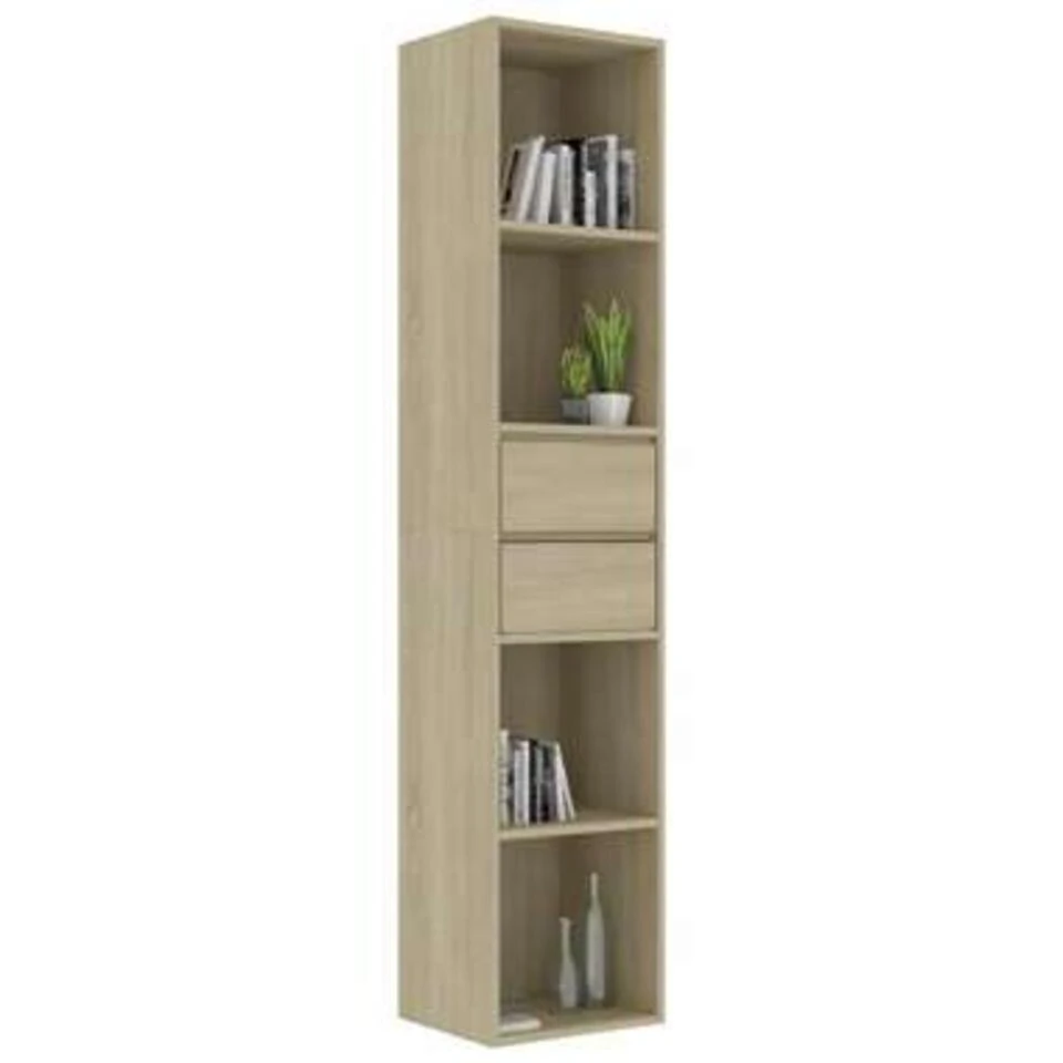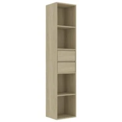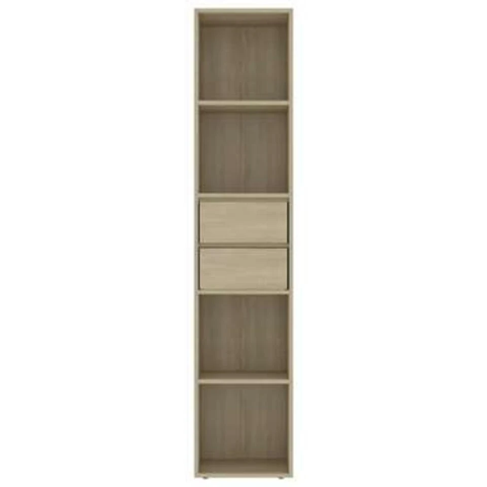 Deze kast is gemaakt van spaanplaat, waardoor hij stabiel en duurzaam is. Het meubel is ontworpen met 4 schappen en 2 lades en biedt dus voldoende ruimte om je tijdschriften en boeken georganiseerd en binnen handbereik te houden. Bovendien is de boekenkast gemakkelijk schoon te maken met een vochtige doek.
