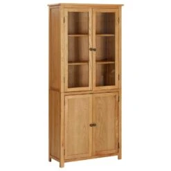 Deze boekenkast is vakkundig gemaakt van massief eikenhout en MDF, waardoor hij duurzaam en functioneel is. Hij beschikt over 3 schappen achter de 2 glazen deuren waarop je je verzamelobjecten, ingelijste foto’s, potplanten, enz. kunt plaatsen. Je kunt spullen zoals opbergbakken en tijdschriften op de 2 onderschappen achter de 2 houten deuren plaatsen en zo uit het zicht bewaren.