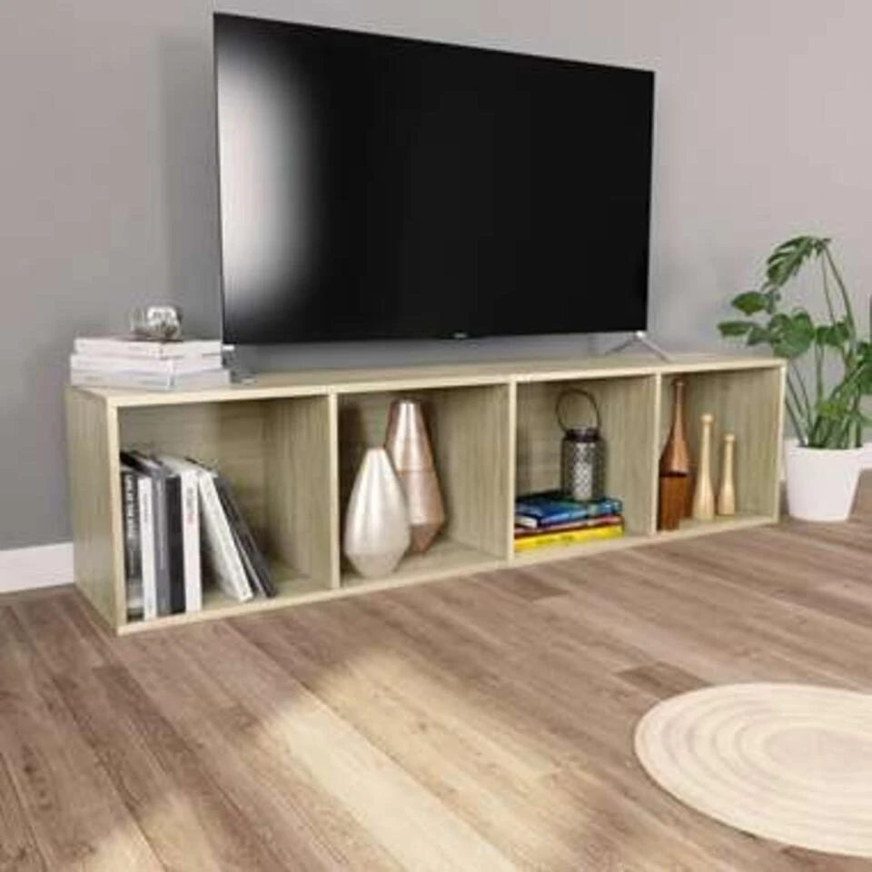 De kast is gemaakt van bewerkt hout waardoor hij stevig en duurzaam is. De boekenkast is ontworpen met 4 vakken en biedt voldoende ruimte om je tijdschriften, boeken, dvd’s en multimedia-apparaten geordend en binnen handbereik op te bergen. Bovendien is dit meubel zeer veelzijdig omdat het horizontaal geplaatst kan worden om als televisiemeubel gebruikt te worden. Het is dus een perfecte keuze voor je woonruimte.