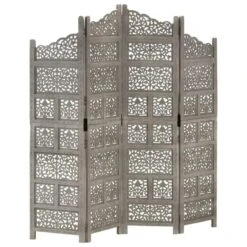 Bovendien beschikt het kamerscherm over een massieve constructie en heeft het prachtige, met de hand gesneden patronen, wat de schoonheid van het privacyscherm vergroot. De kamerverdeler kan eenvoudig worden ingeklapt om ruimte te besparen wanneer het niet wordt gebruikt. Het scherm is eenvoudig te monteren.