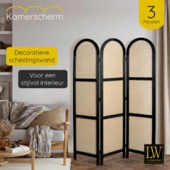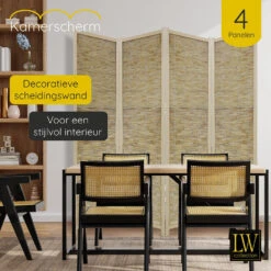 Deze kamerverdeler is 200 cm breed en 170 cm hoog. Hij is ideaal om wat privacy te creëren of om een deel van de kamer af te schermen. Hij is een praktische en decoratieve aanvulling op je slaapkamer, woonkamer of kantoor.