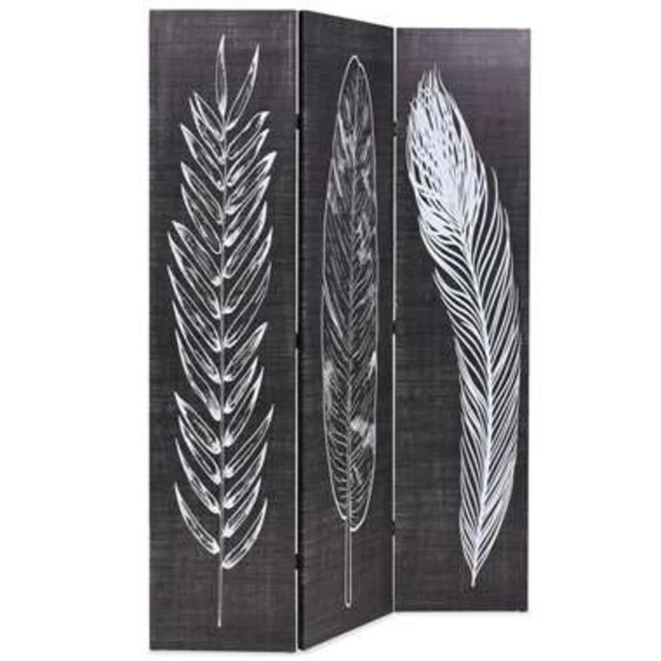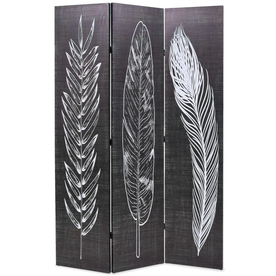 Het kamerscherm heeft een massief houten frame en is bekleed met duurzaam canvas dat aan beide zijden een gedistingeerde verenprint heeft. Het scherm voegt een vleugje klasse toe aan je kamer. De kamerverdeler kan ook eenvoudig worden ingeklapt om ruimte te besparen wanneer hij niet in gebruik is.