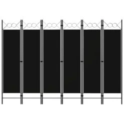 Onze vrijstaande en praktische ruimteverdeler met 6 panelen is te gebruiken als afscheiding, privacyscherm of als decoratie. Hij biedt ideale privacy in de slaapkamer en is ook perfect om een gedeelte van een kamer af te schermen. De bovenkant heeft een cirkelontwerp dat extra elegantie toevoegt.