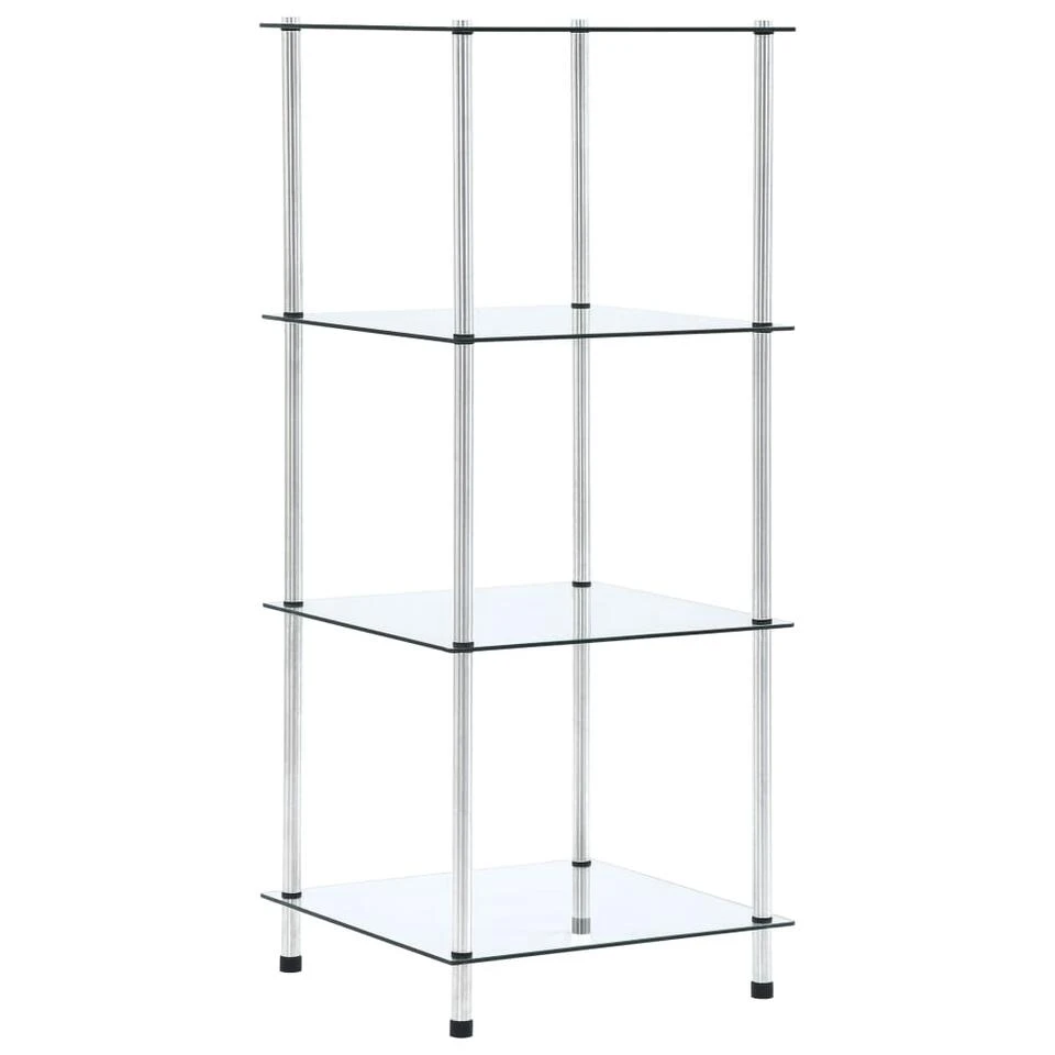 De vitrinekast is ontworpen met vier lagen voor voldoende opbergruimte. Je kunt het multifunctionele kastje in de woonkamer of op kantoor gebruiken om je verzamelobjecten, fotolijsten, potplanten te tonen, of in de badkamer om je benodigdheden georganiseerd te houden. Het is gemaakt van dik, gehard glas en robuust, duurzaam roestvrij staal. Dit meubel is buitengewoon stevig en veilig. Bovendien is het gladde oppervlak eenvoudig te reinigen met een vochtige doek. Het is eenvoudig te monteren.