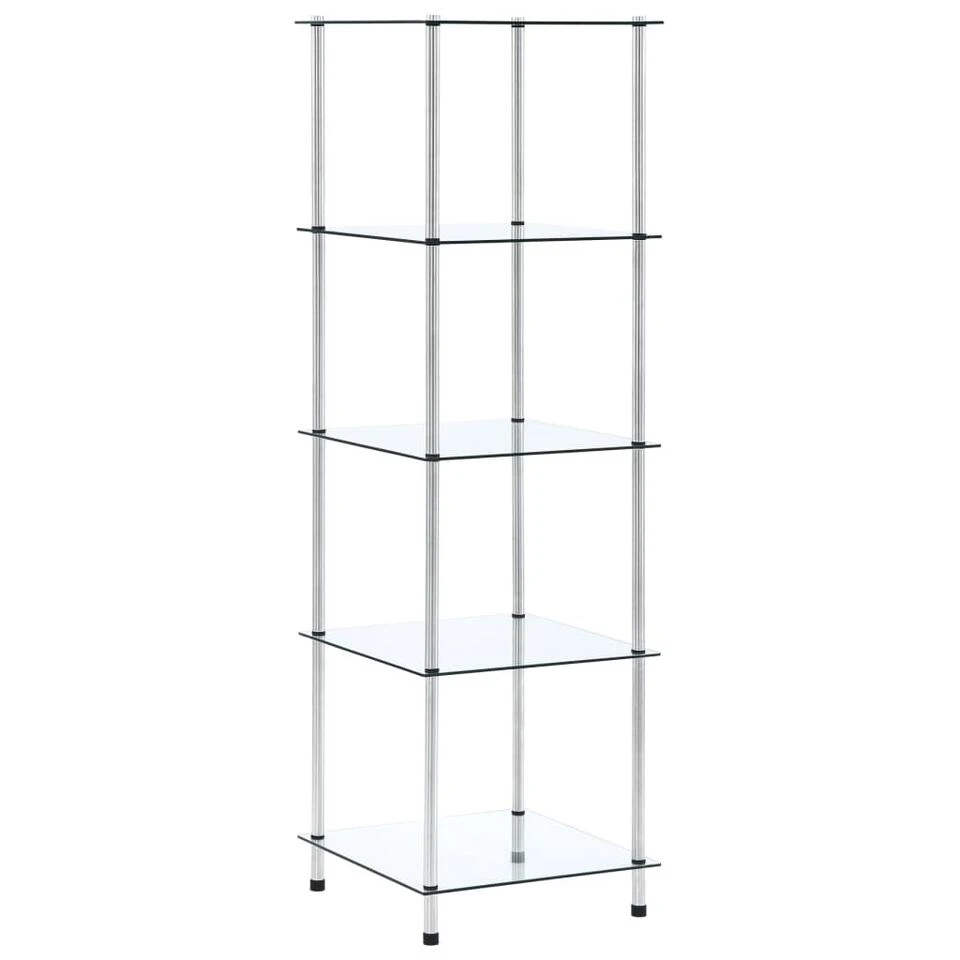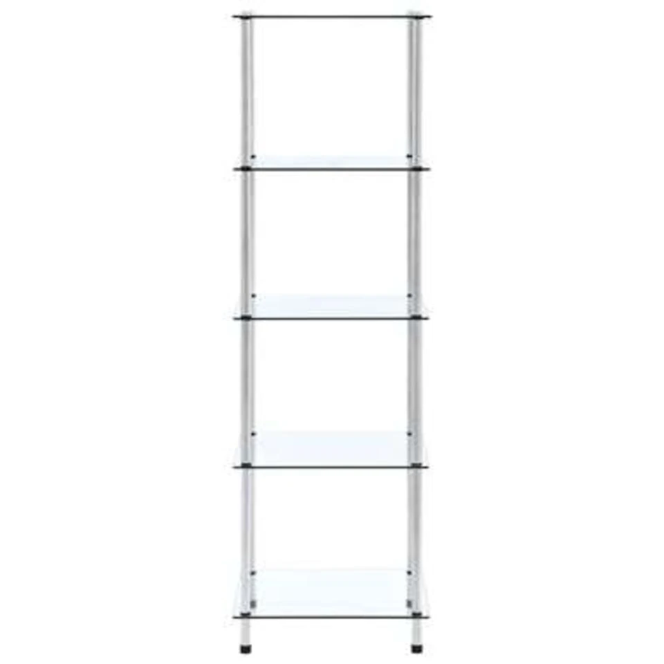 De vitrinekast is ontworpen met vijf lagen voor voldoende opbergruimte. Je kunt het multifunctionele kastje in de woonkamer of op kantoor gebruiken om je verzamelobjecten, fotolijsten, potplanten te tonen, of in de badkamer om je benodigdheden georganiseerd te houden. Het is gemaakt van dik, gehard glas en robuust, duurzaam roestvrij staal. Dit meubel is buitengewoon stevig en veilig. Bovendien is het gladde oppervlak eenvoudig te reinigen met een vochtige doek. Het is eenvoudig te monteren.