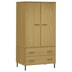 Deze compacte houten kledingkast is de perfecte opbergoplossing en geeft je woning een trendy tintje!
