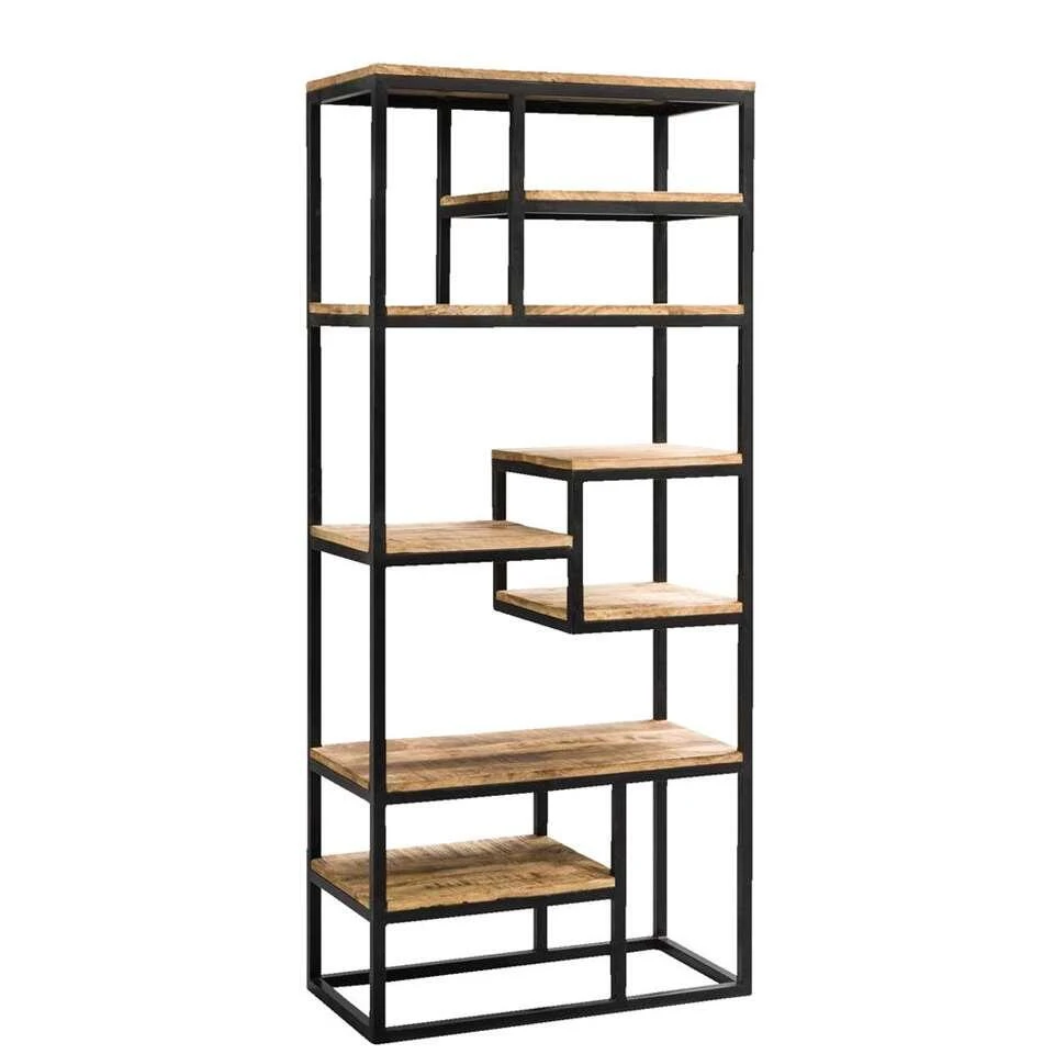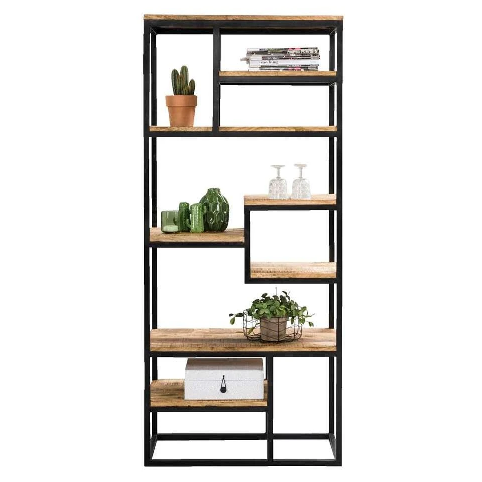Deze prachtige kast bestaat uit mangohout en is afgewerkt met zwart metaal. Dit geeft Kyan zijn industriële look en feel! Wandkast Kyan heeft een afmeting van 180x80x40 cm. Dit zorgt ervoor dat deze kast een opvallende verschijning in jouw interieur is. Vul boekenkast Kyan met je favoriete kookboeken, leuke kiekjes of zet er een mooie cactus in.