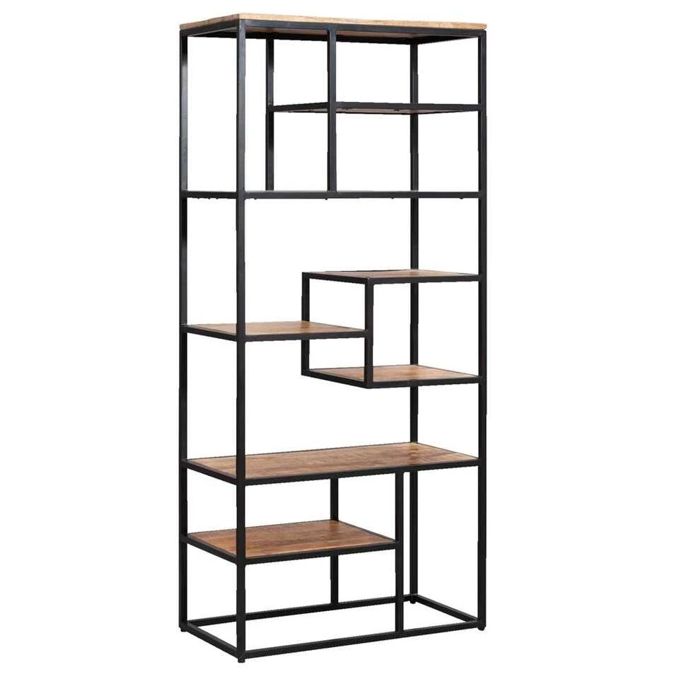 Deze kast is gemaakt van mangohout en metaal.
